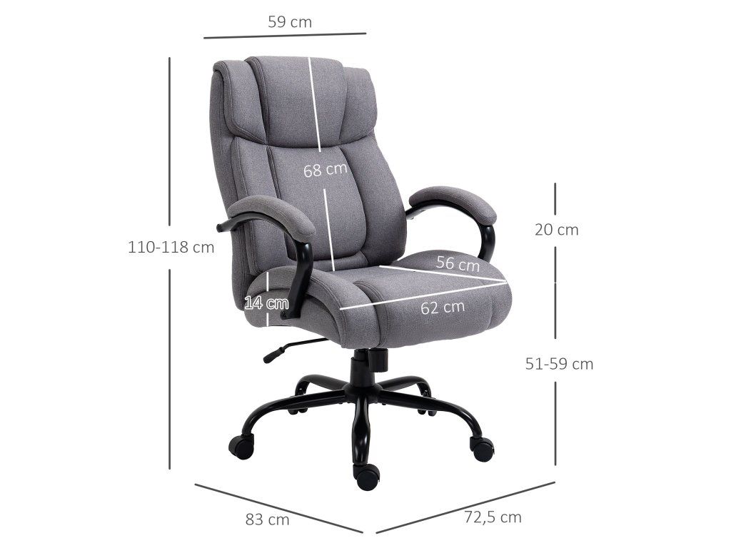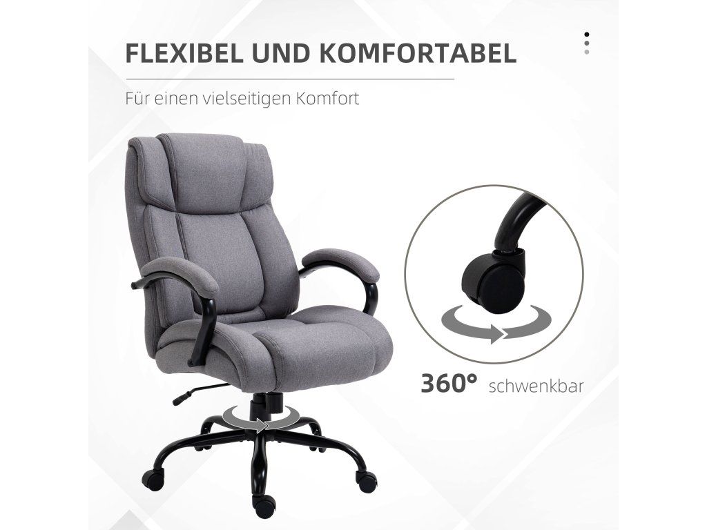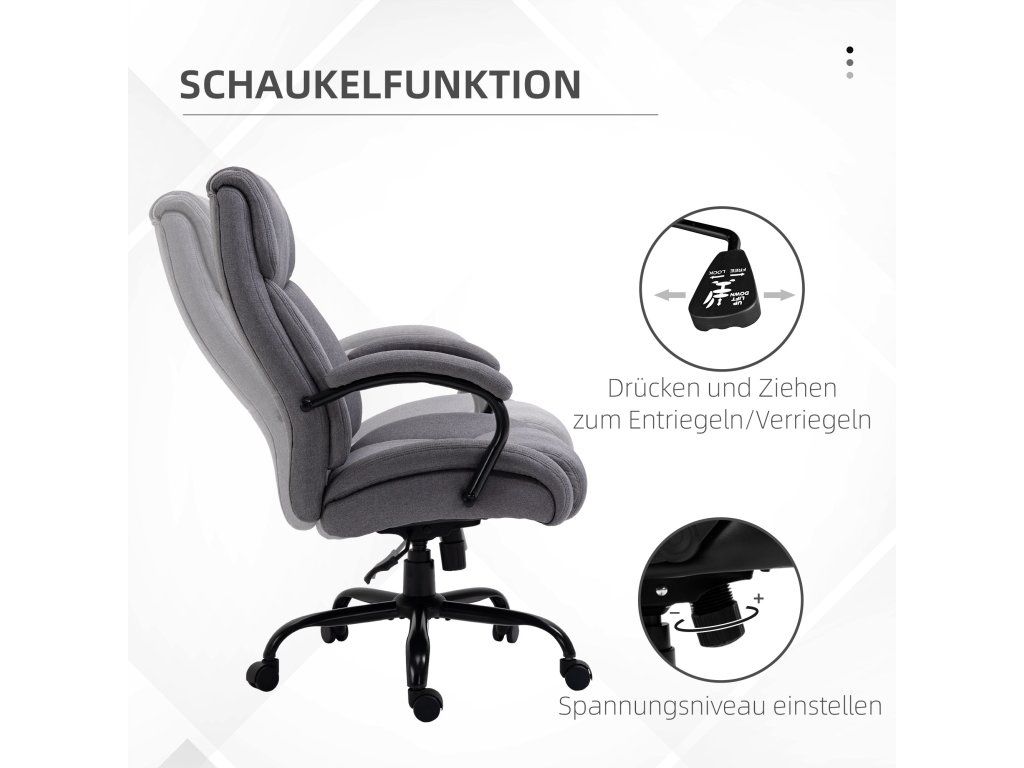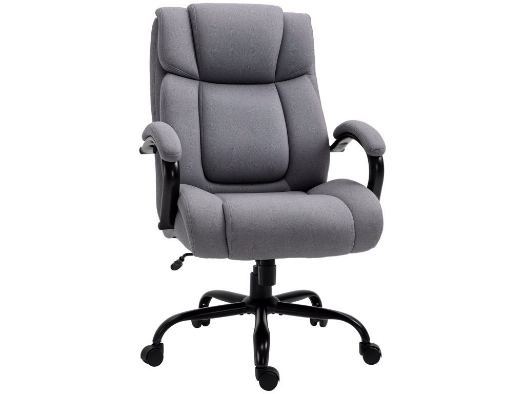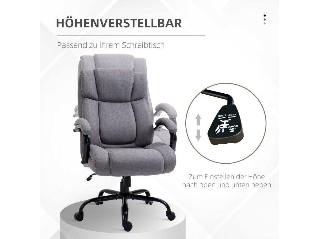 Kancelářská židle Vinsetto, Ergonomická manažerská židle, Čalouněná kancelářská židle s područkami, Výškově nastavitelná otočná židle s funkcí houpání, vzhled lnu, max. nosnost 220 kg, světle šedá barva