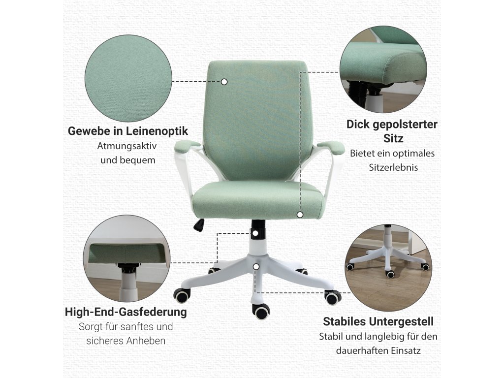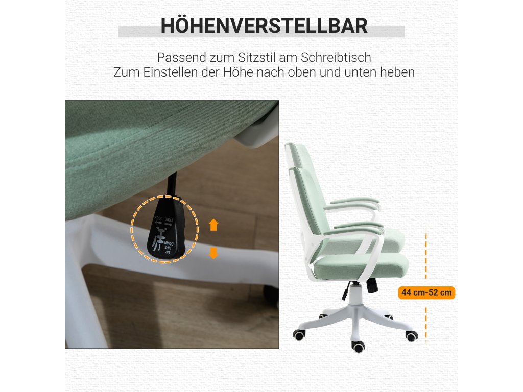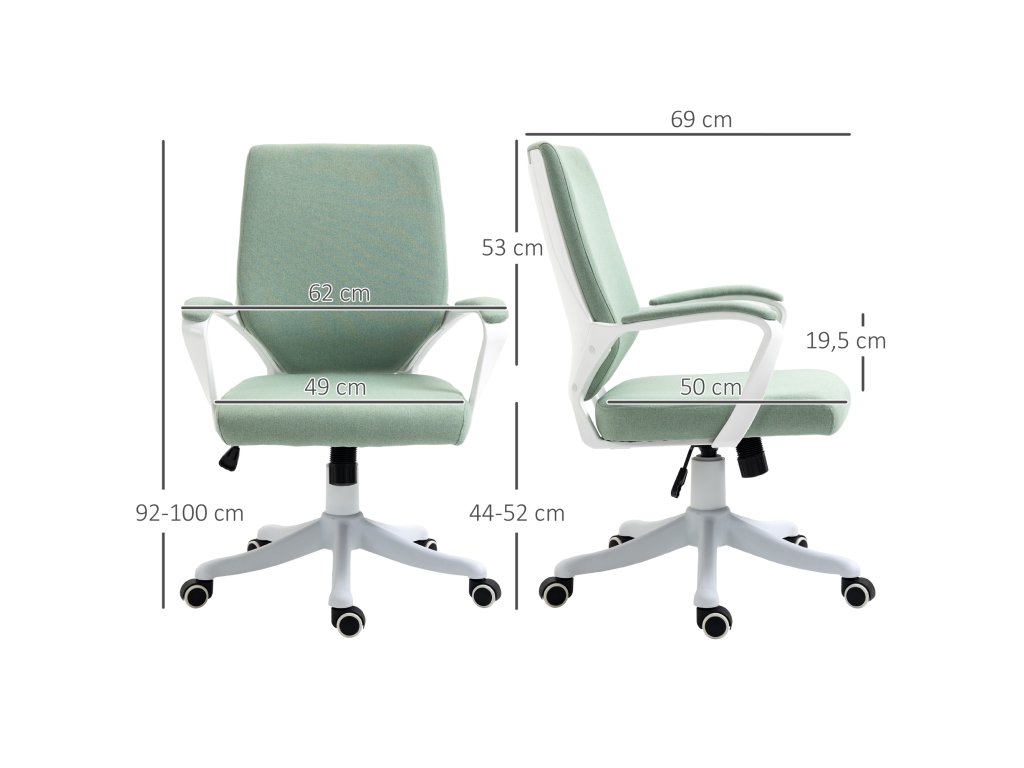 Kancelářská židle Vinsetto, kancelářská židle, židle do domácí kanceláře s houpací funkcí, výškově nastavitelné opěradlo, silně polstrovaná, ergonomická, kolečka otočná o 360°, polyester, nylon, PP, zelená + bílá, 62x69x92-100 cm