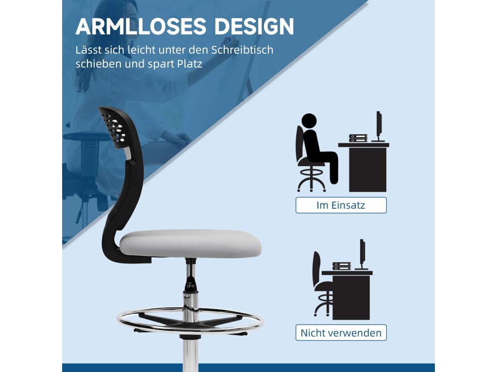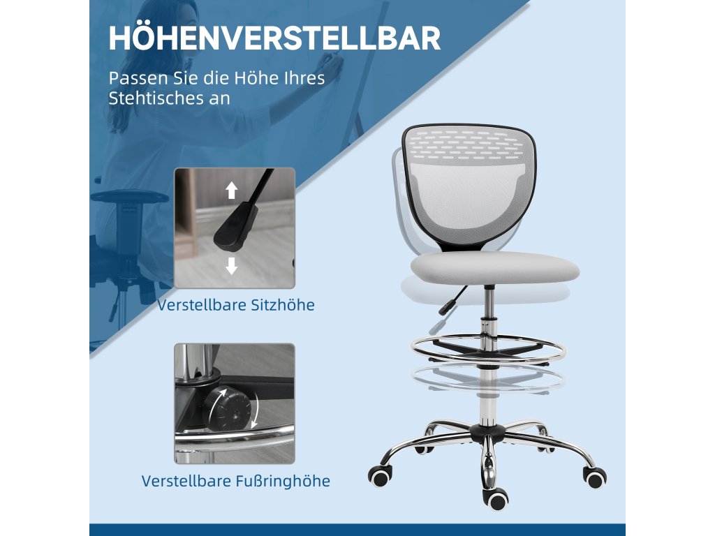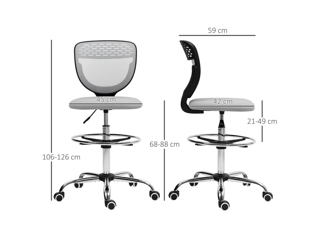 Najděte si ideální židli pro vysoké stoly s kancelářskou židlí Vinsetto. Výška sedáku je nastavitelná od 68 do 88 cm, což zajišťuje optimální polohu při sezení a zabraňuje namáhání. Polstrovaný sedák a vysoké opěradlo poskytují pohodlí. Bezpodručkový design a otočný sedák této kancelářské židle zvyšují vaši volnost pohybu. Součástí je také nastavitelná opěrka nohou.