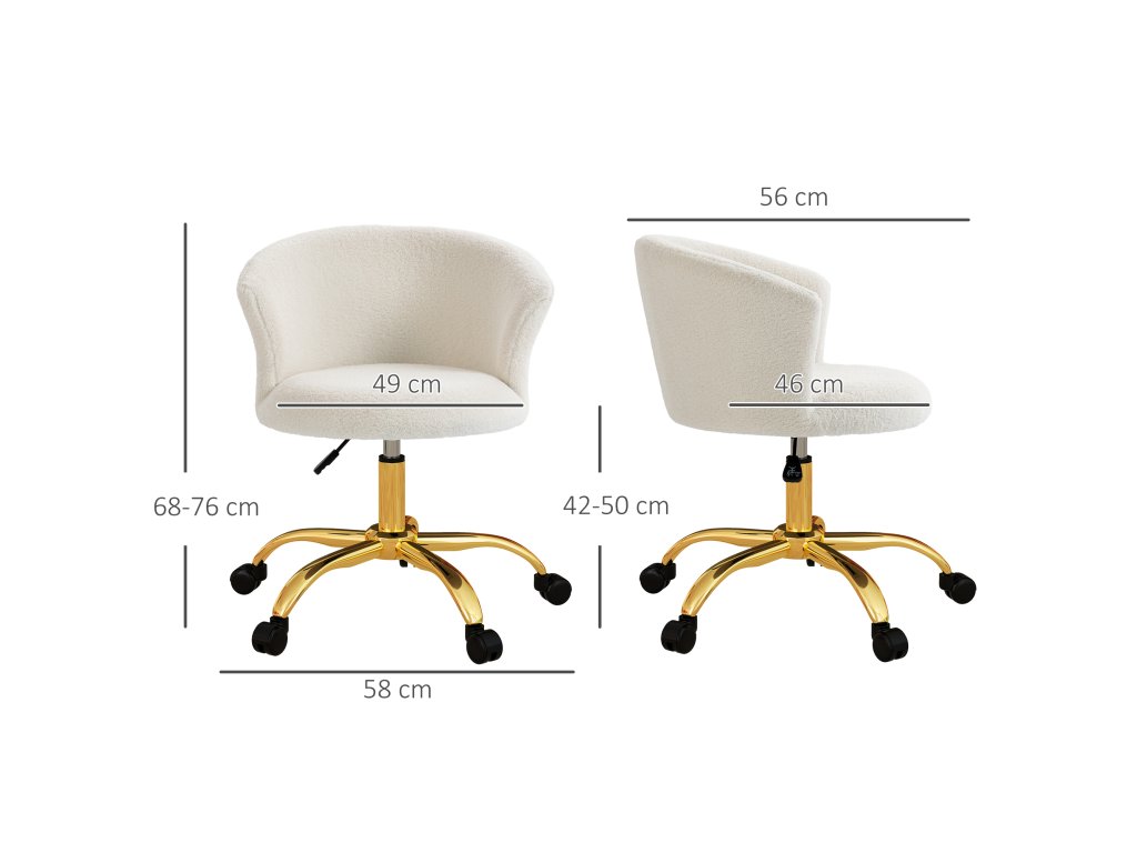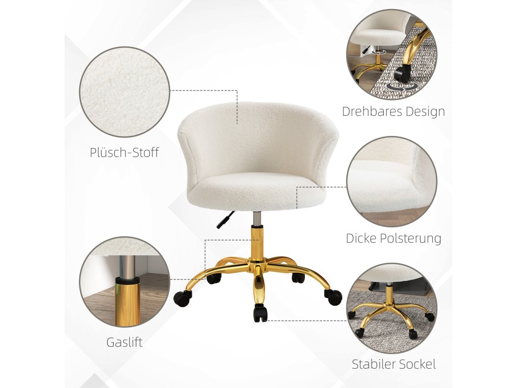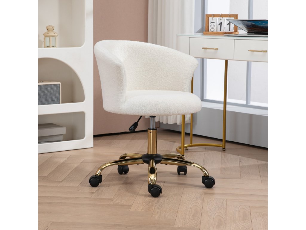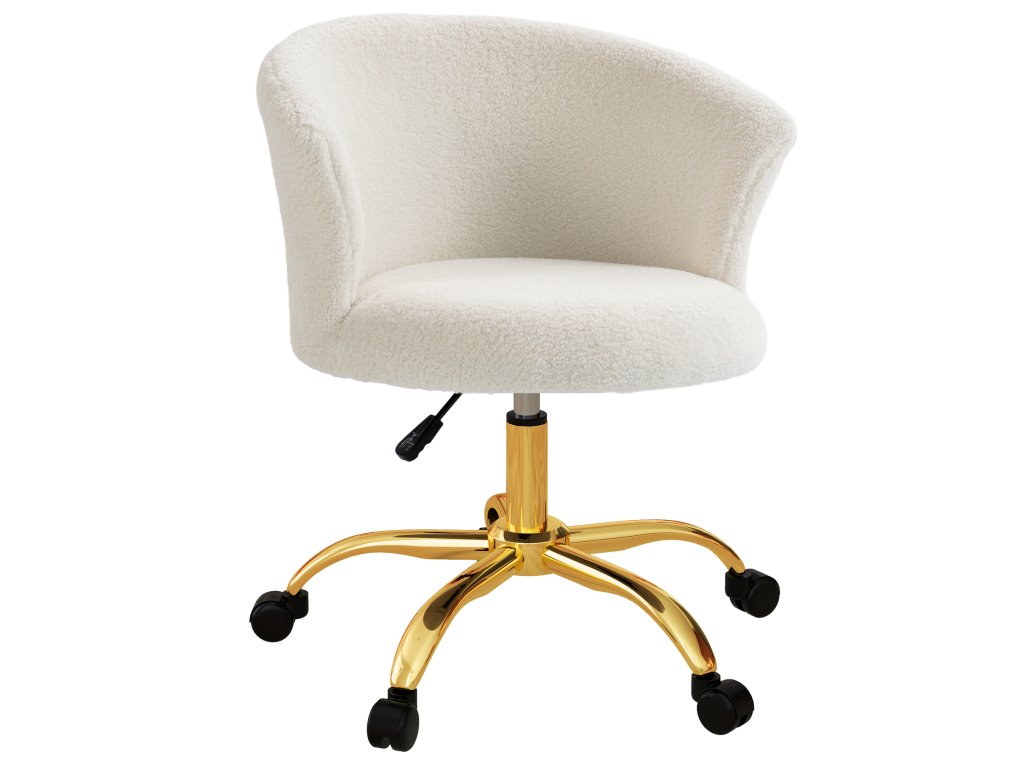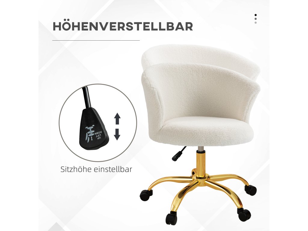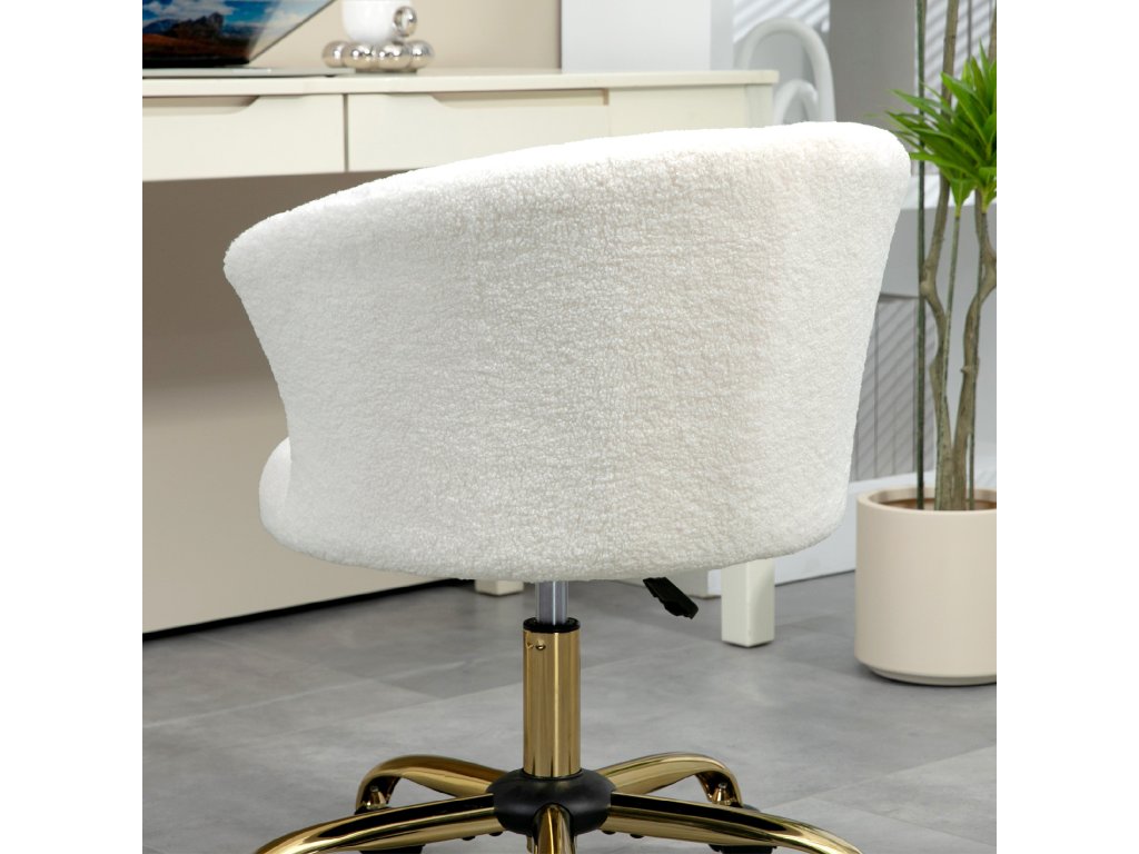 Kancelářská židle Vinsetto, výškově nastavitelná kancelářská židle s plyšovým vzhledem, 58 x 56 x 68-76 cm, bílá