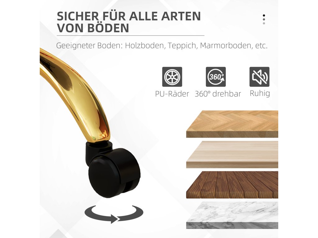 ✔ Kolečka z PU jsou vhodná pro všechny typy podlah, jako například... Vhodné pro různé typy podlah, včetně parket, laminátu, dlaždic a břidlice.
