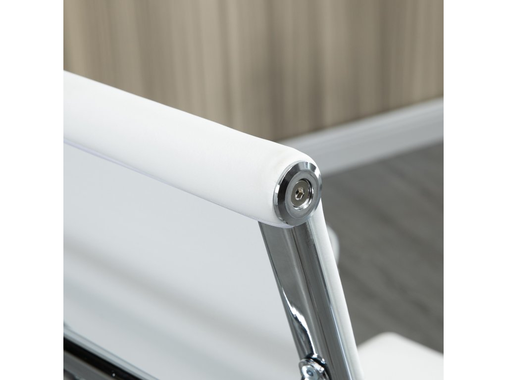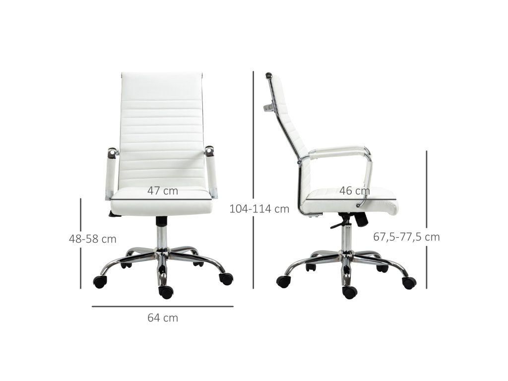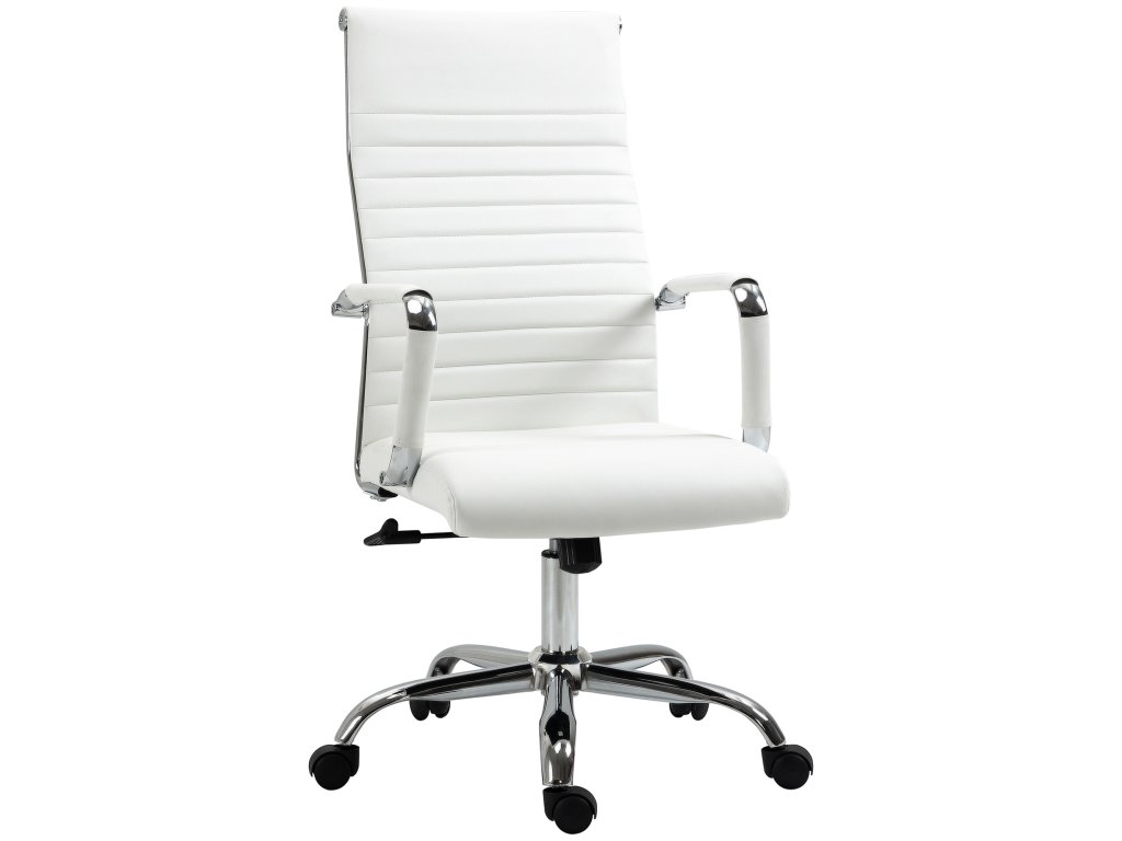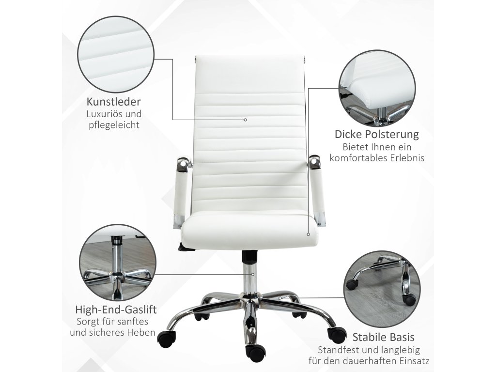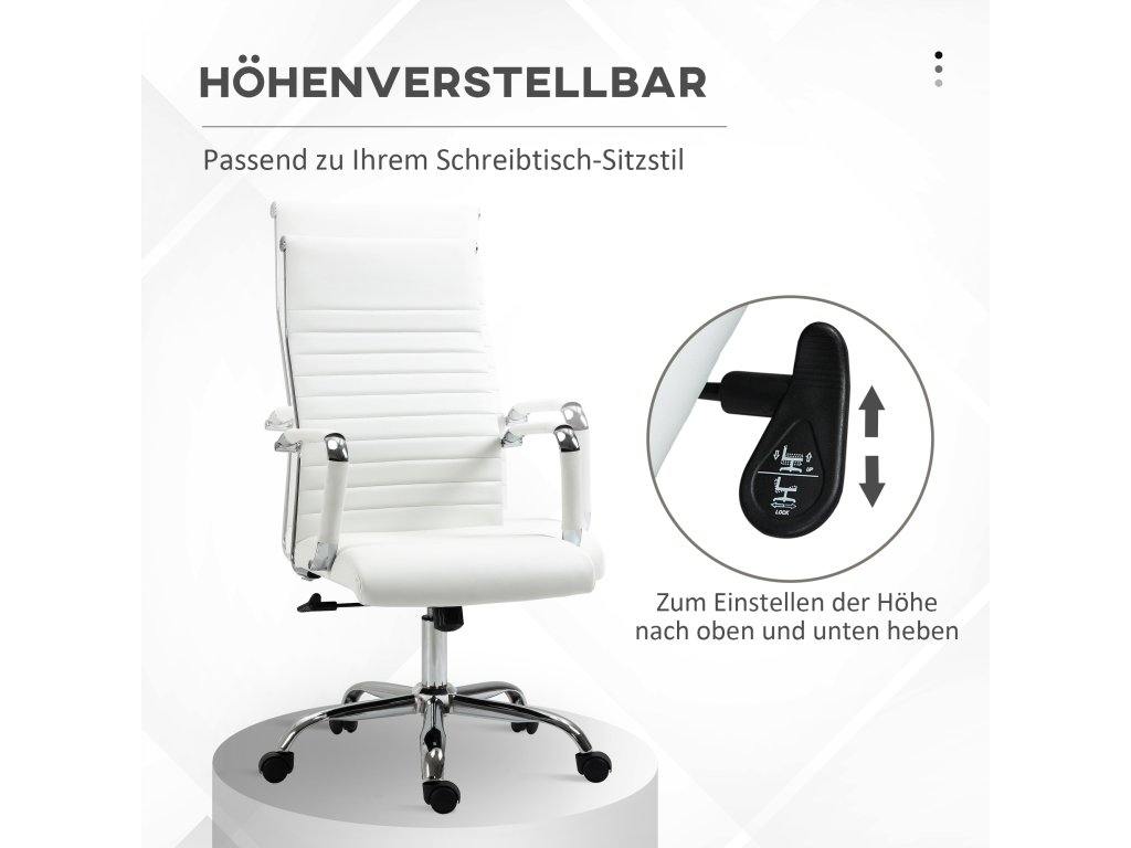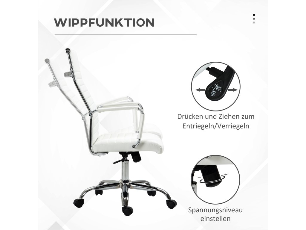 Kancelářská židle Vinsetto ergonomická kancelářská židle s houpací funkcí manažerská židle výškově nastavitelná otočná židle čalouněná imitací kůže pěnovou barvou bílá 54 x 62 x 104-114 cm