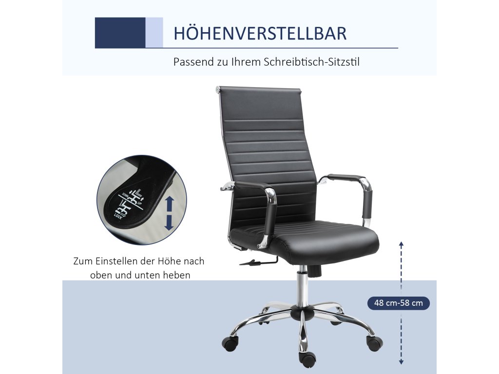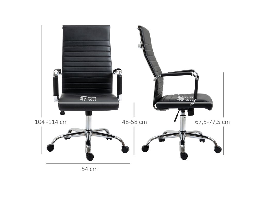 Kancelářská židle Vinsetto ergonomická kancelářská židle s houpací funkcí manažerská židle výškově nastavitelná otočná židle čalouněná koženkou pěnovou černou 54 x 62 x 104-114 cm