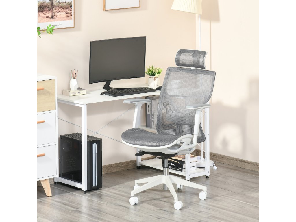 Kancelářská židle Vinsetto Kancelářská židle Otočná židle Herní židle s opěrkou hlavy Bederní polštář 3D područky 3 úrovně 360° otočná kolečka Výškově nastavitelná ergonomická síťovina Pěnová šedá 67 x 65 x 120-128 cm