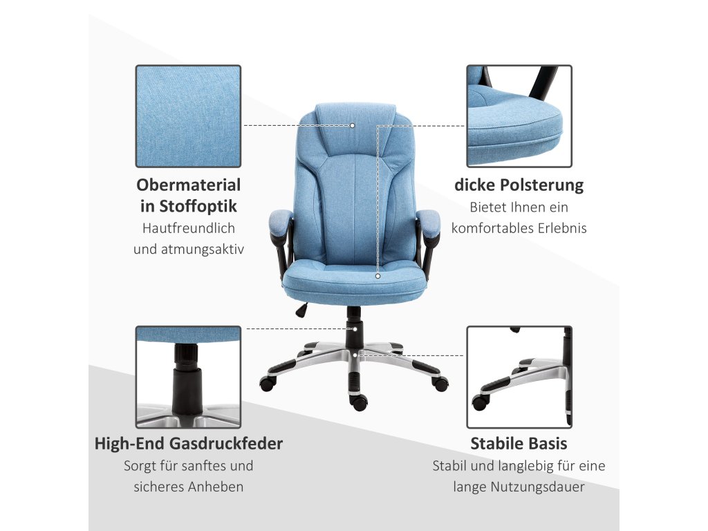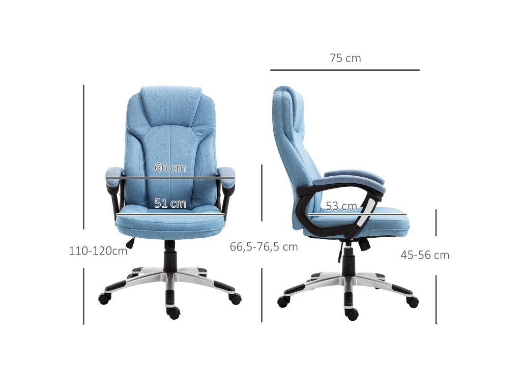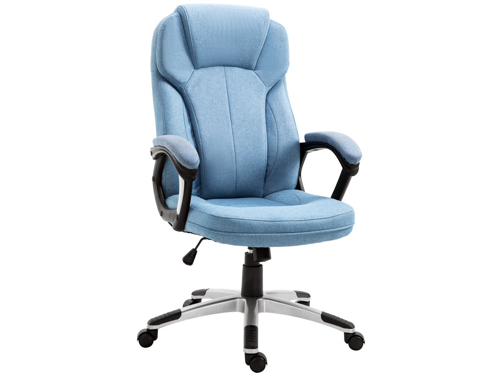 Kancelářská židle Vinsetto počítačová židle otočná židle s funkcí nastavení výšky sklonu s opěrkou hlavy a čalouněnými područkami Ergonomická světle modrá plátěná 66 x 75 x 110-120 cm