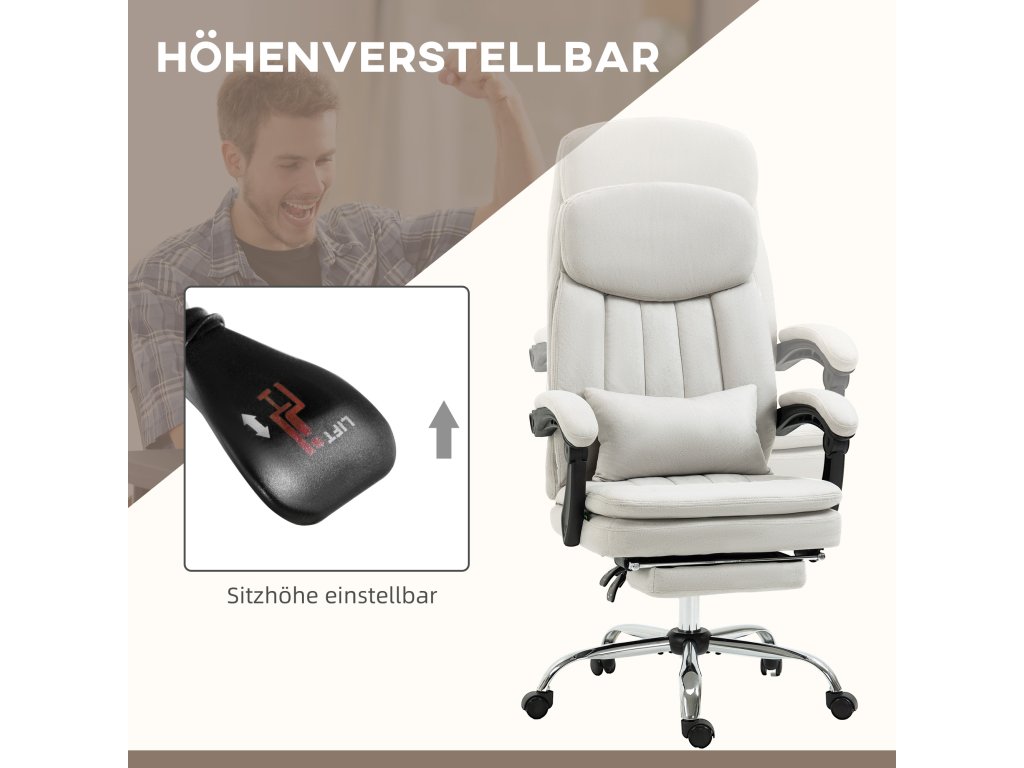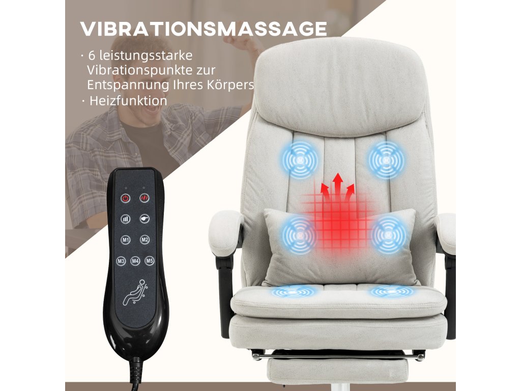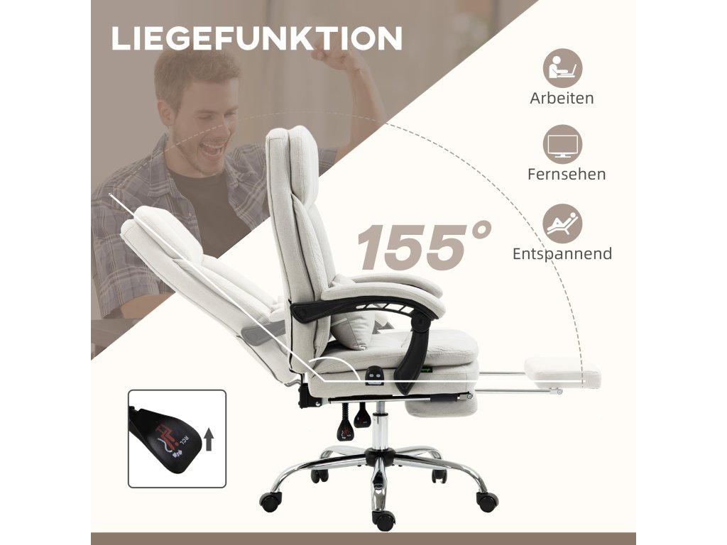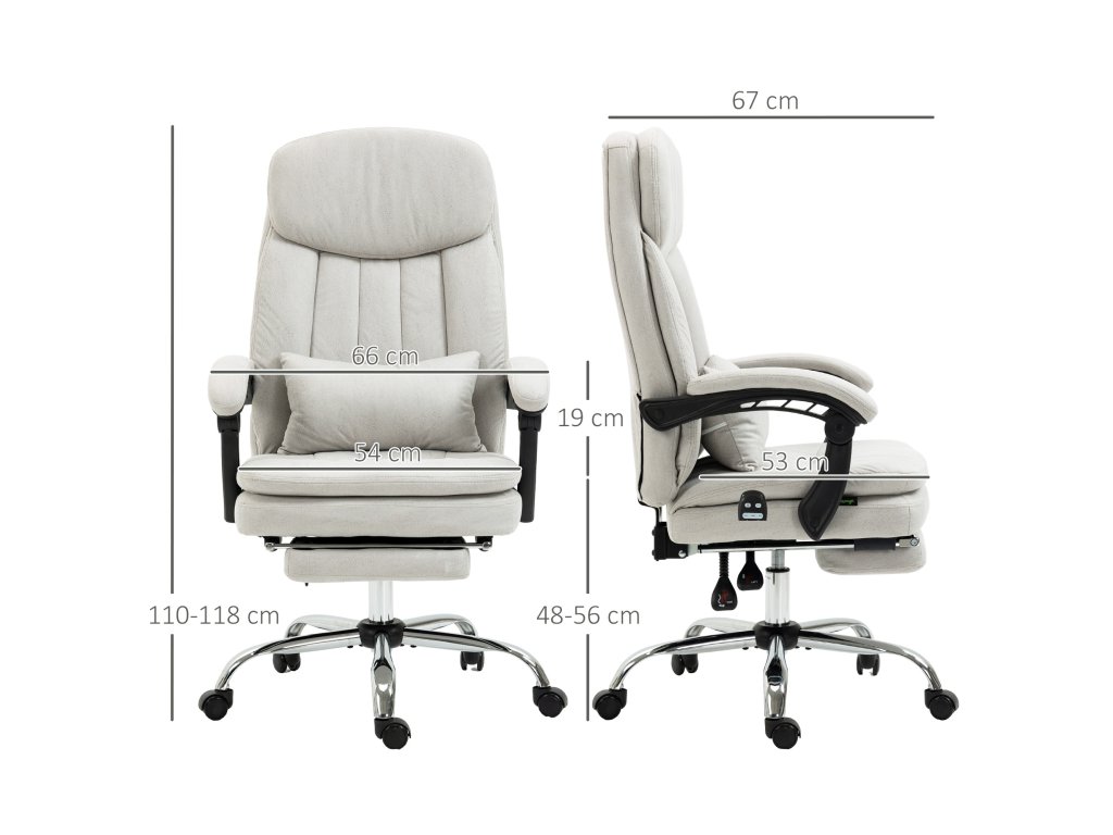 Kancelářská židle Vinsetto s masážní a vyhřívací funkcí, ergonomická, 66x67x110-118cm, krémově bílá