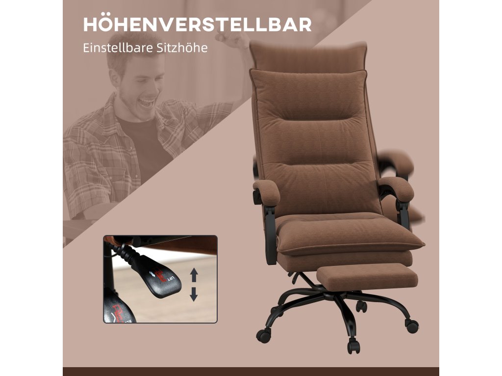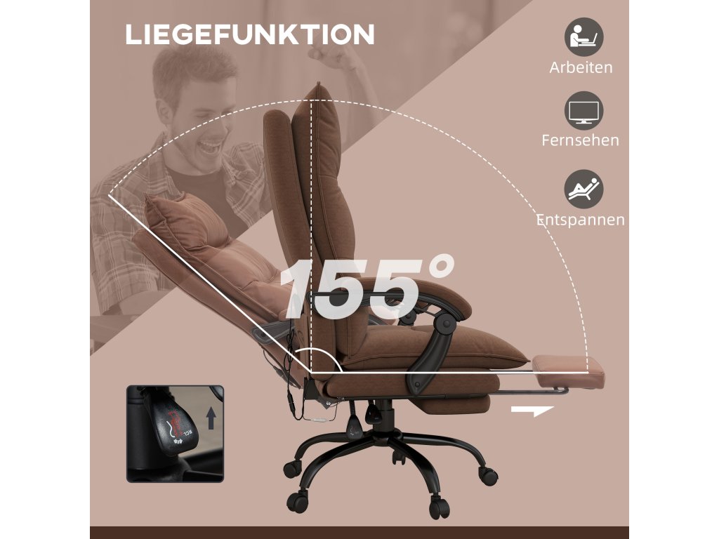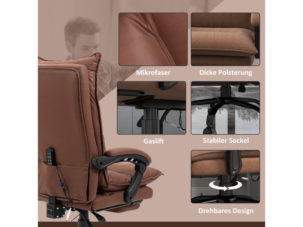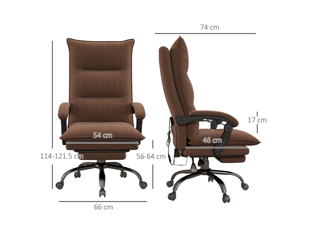 Kancelářská židle Vinsetto s masážní a vyhřívací funkcí, podnožka, nastavitelná, do 120 kg, hnědá