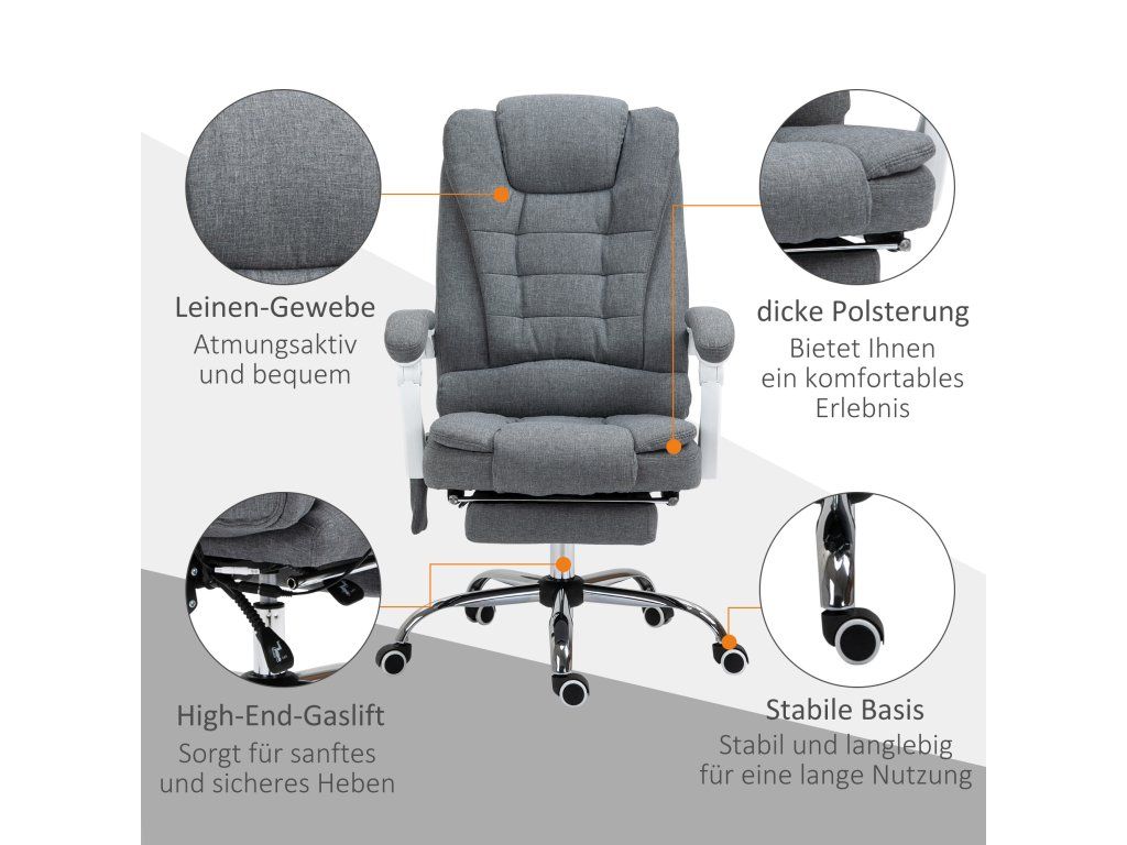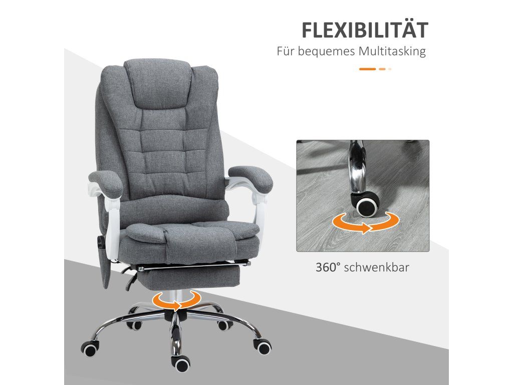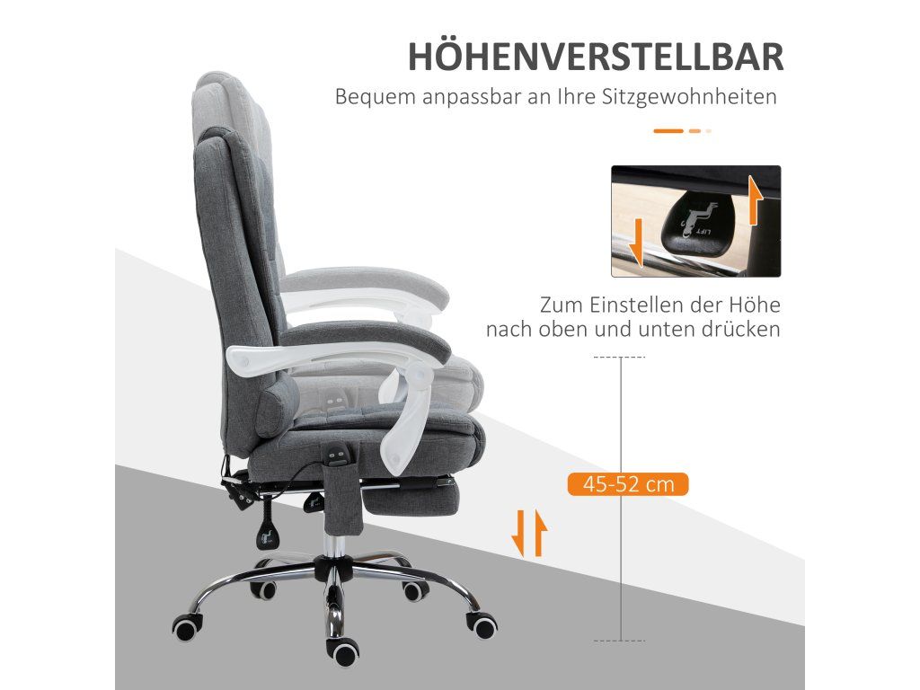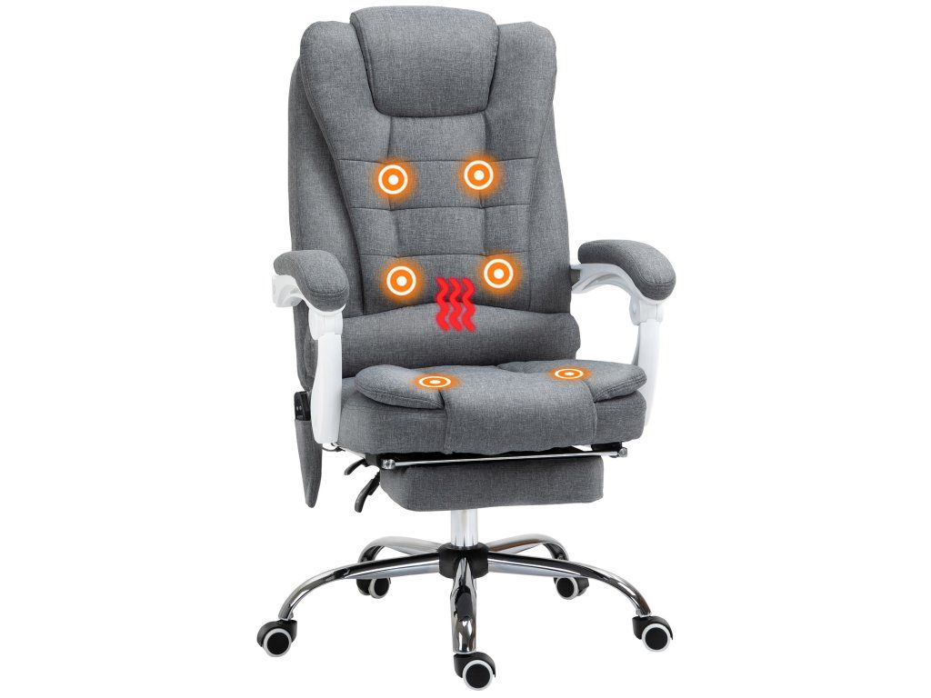 Kancelářská židle Vinsetto s masážní a vyhřívací funkcí, sklopné opěradlo, otočná a výškově nastavitelná, do 120 kg, šedá barva