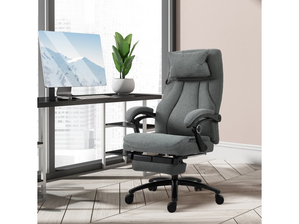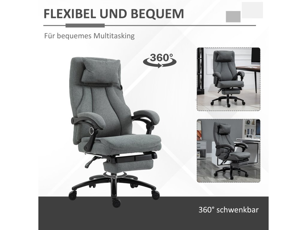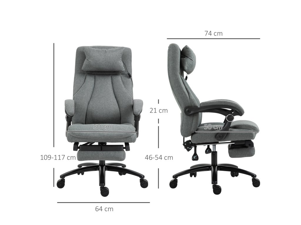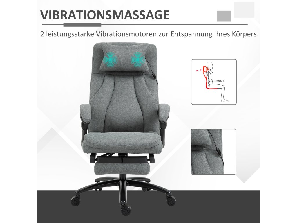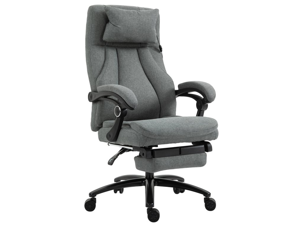 Kancelářská židle Vinsetto s masážní funkcí, výškově nastavitelná manažerská židle, herní židle s opěrkou nohou a masážní funkcí, ergonomická otočná židle, masážní křeslo, lněný pocit, šedá, 64 x 74 x 109-117 cm