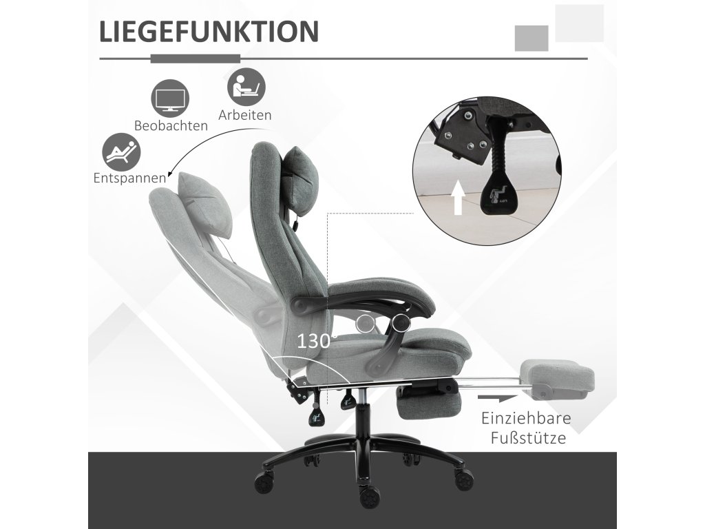 ✔ V kanceláři se můžete naklonit až o 130°
