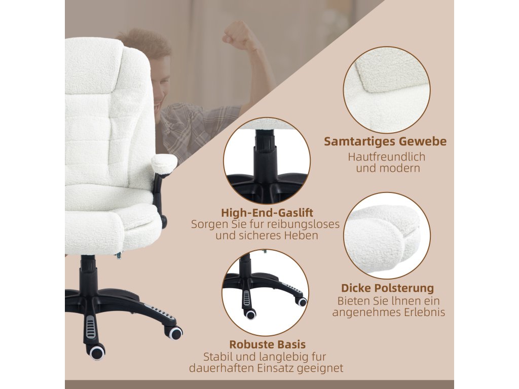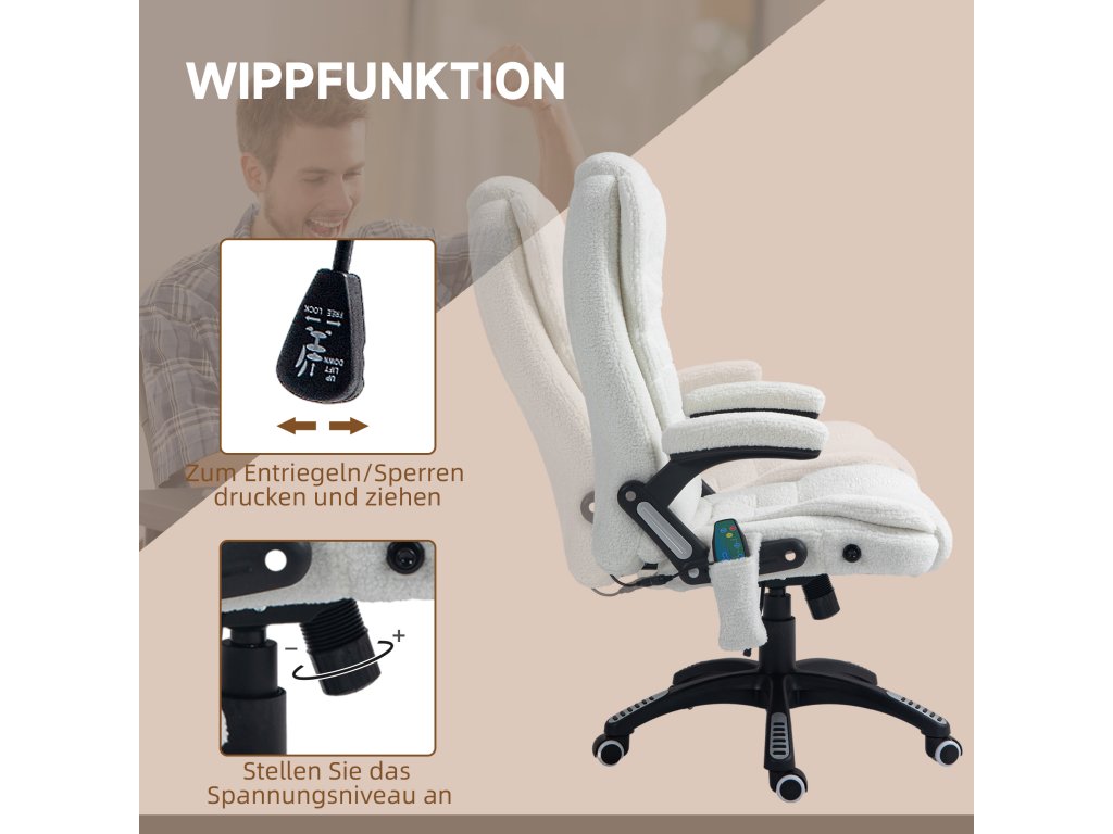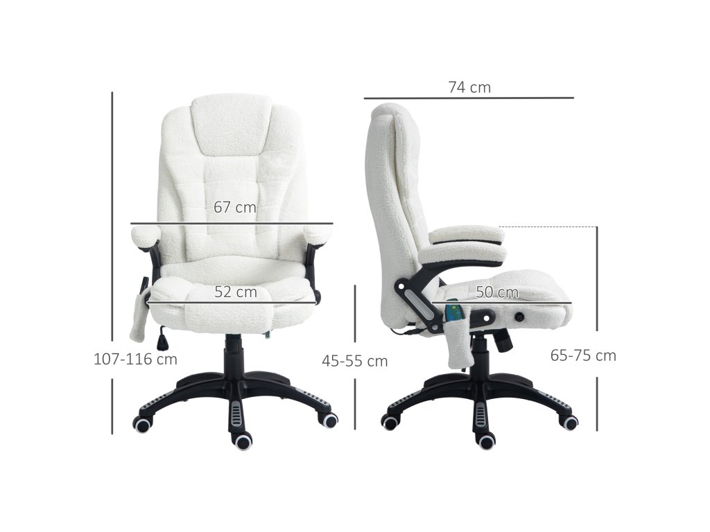 Kancelářská židle Vinsetto s masážní funkcí Kancelářská židle s masážní funkcí, výškově nastavitelná, 67 x 74 x 107-116 cm, bílá
