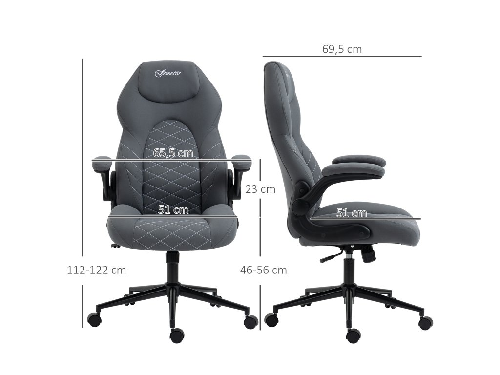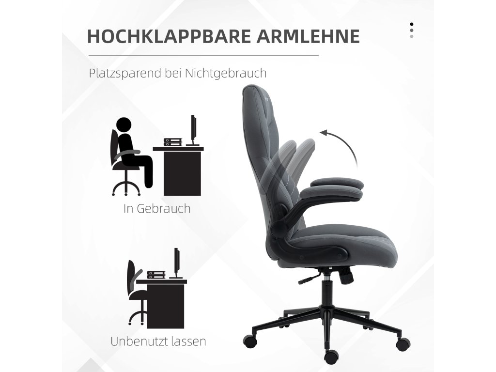 Kancelářská židle Vinsetto s opěradlem, výškově nastavitelná, sklopné područky, houpací funkce, tmavě šedá