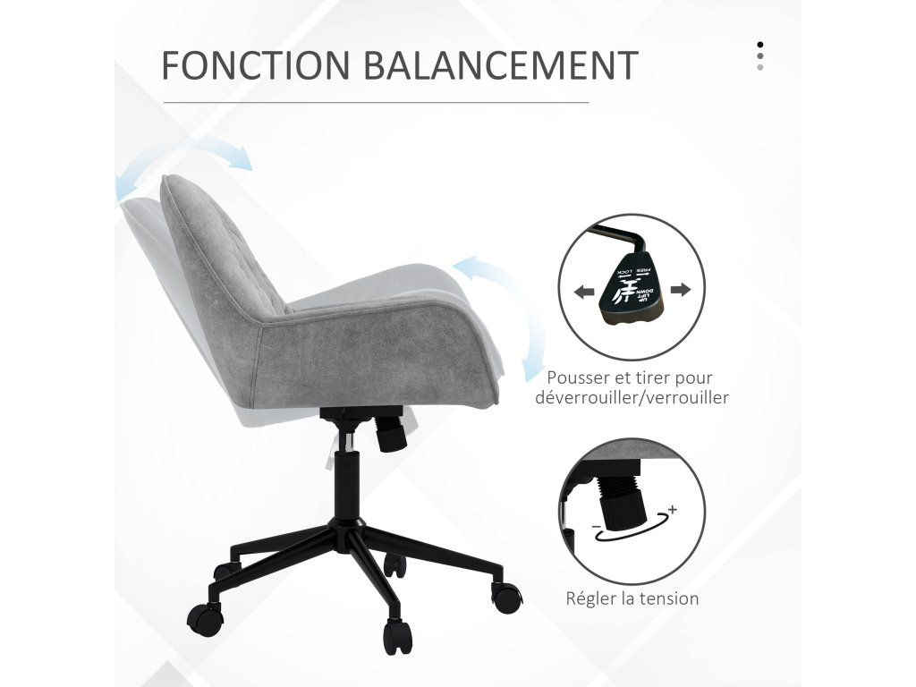 Zvolte si toto kancelářské křeslo ve volnočasovém stylu od společnosti Vinsetto pro odpočinek nebo pro svou práci. Křeslo k PC můžete umístit do kanceláře, ložnice nebo obývacího pokoje. Díky ergonomickému designu, silnému polstrování a měkké látce nabízí kancelářská židle mimořádné pohodlí při dlouhodobém používání. Výšku sedáku si můžete nastavit pro lepší pocit ze sezení. Otočná kolečka vám umožní rychlý pohyb.