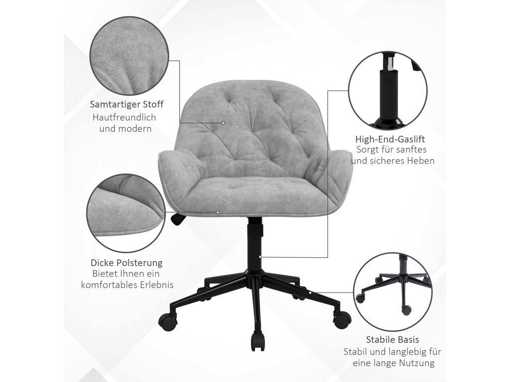 Kancelářské křeslo Vinsetto, židle k psacímu stolu, židle k počítači, výškově nastavitelná, sametový vzhled, šedá barva