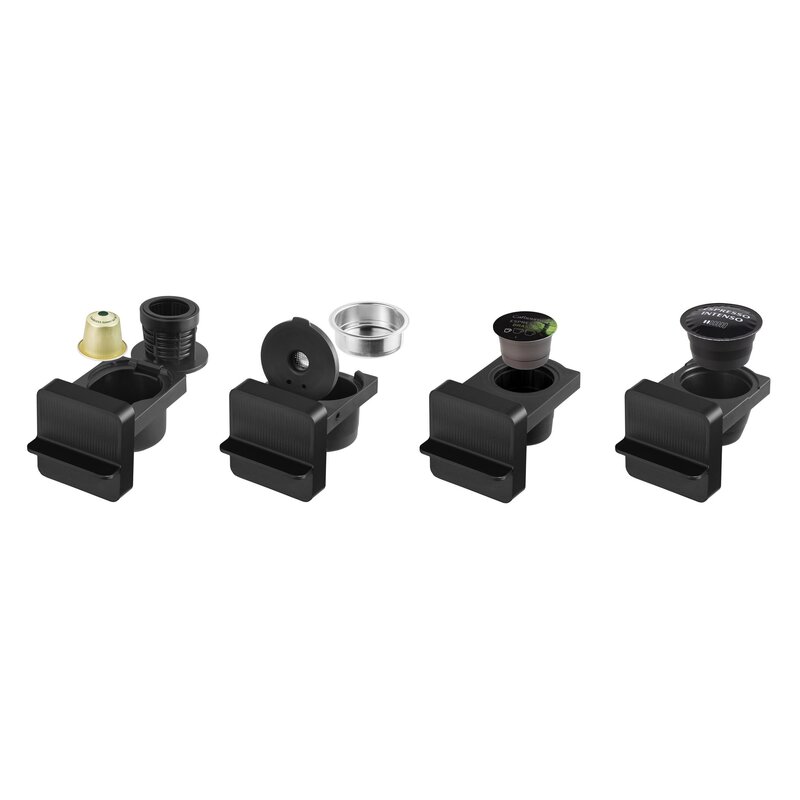 Chcete čerstvě umletou kávu, nebo máte po ruce kapsli, zvládne oboje.Má tři adaptéry na kapsle nejrozšířenějších rozměrů a adaptér na mletou kávu.
