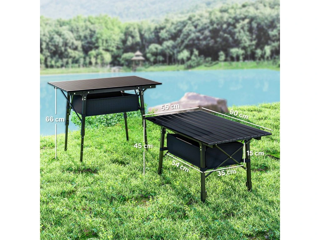 Kempingový stůl Outsunny, s úložným košem, výškově nastavitelný skládací stůl