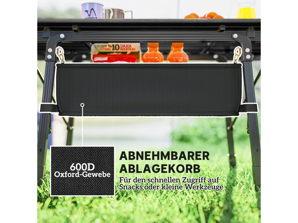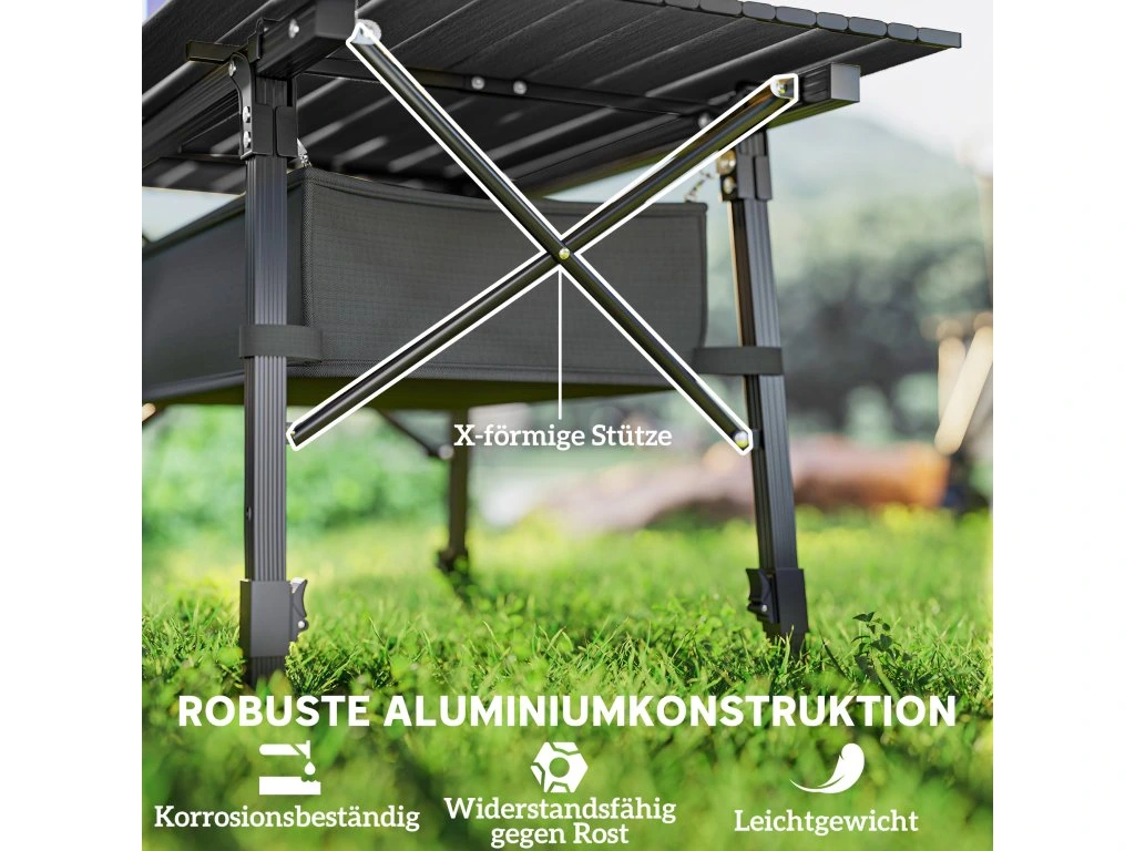 ✔ Kempingový stůl je vyroben z lehkého a odolného hliníku pro dlouhodobé venkovní použití