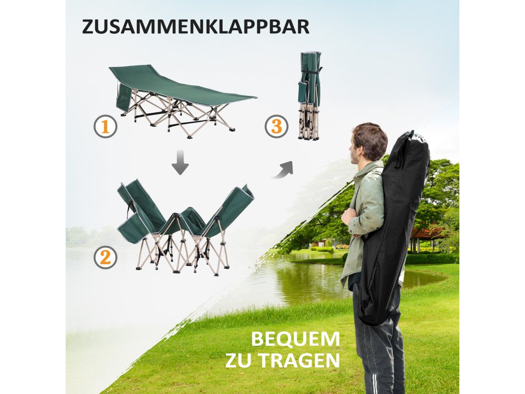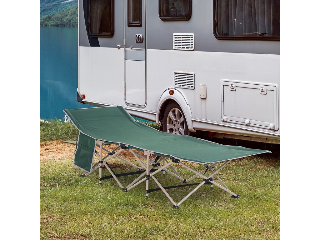 Vždy si pohodlně lehněte, a to i na cestách. S naší snadno přenosnou kempinkovou postelí od společnosti Outsunny to není žádný problém. Lehátko je skládací, takže ho lze rychle postavit i sundat. Odolný potah Oxford je odolný proti povětrnostním vlivům a roztržení a unese až 150 kg. Práškově lakovaný rám je robustní a odolný vůči povětrnostním vlivům a je ideální pro váš příští výlet do přírody.