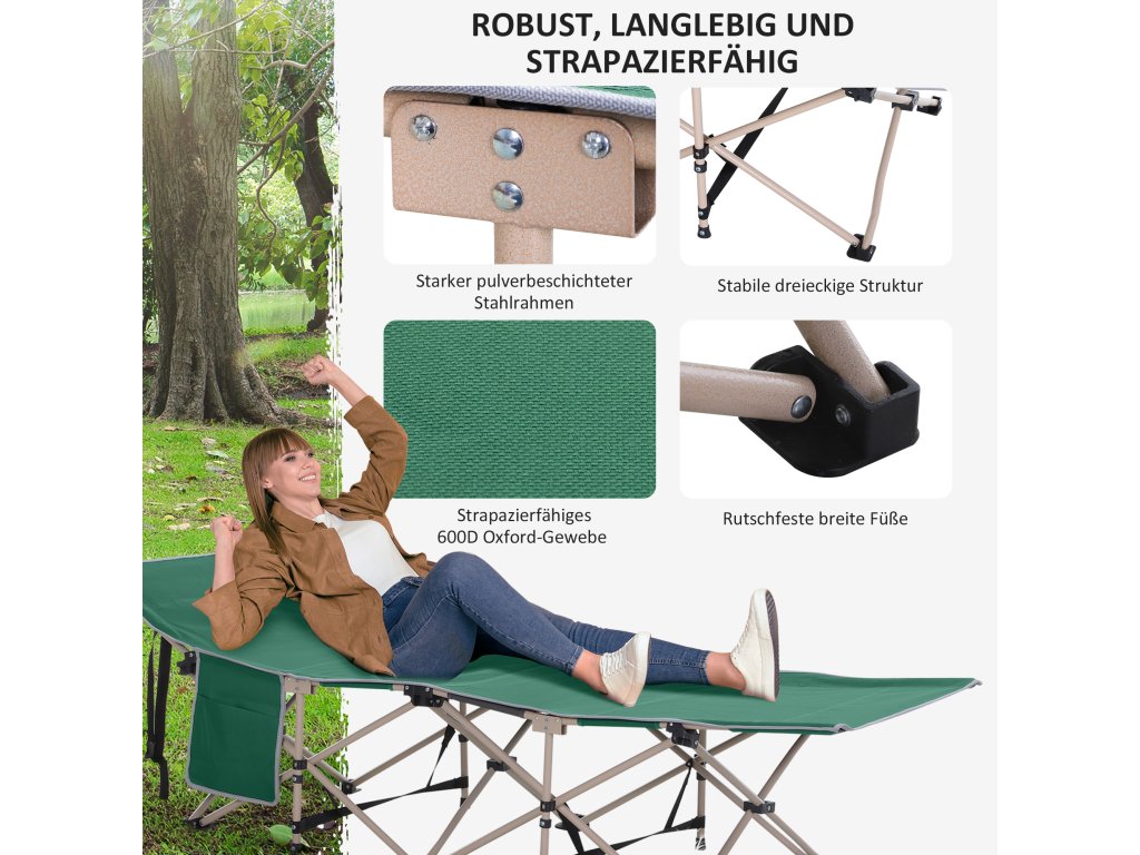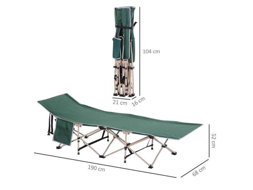 Kempinkové lůžko Outsunny, kempinkové lůžko, skládací, odolné proti povětrnostním vlivům, včetně tašky na přenášení, 190 cm x 68 cm x 52 cm, zelená + béžová barva