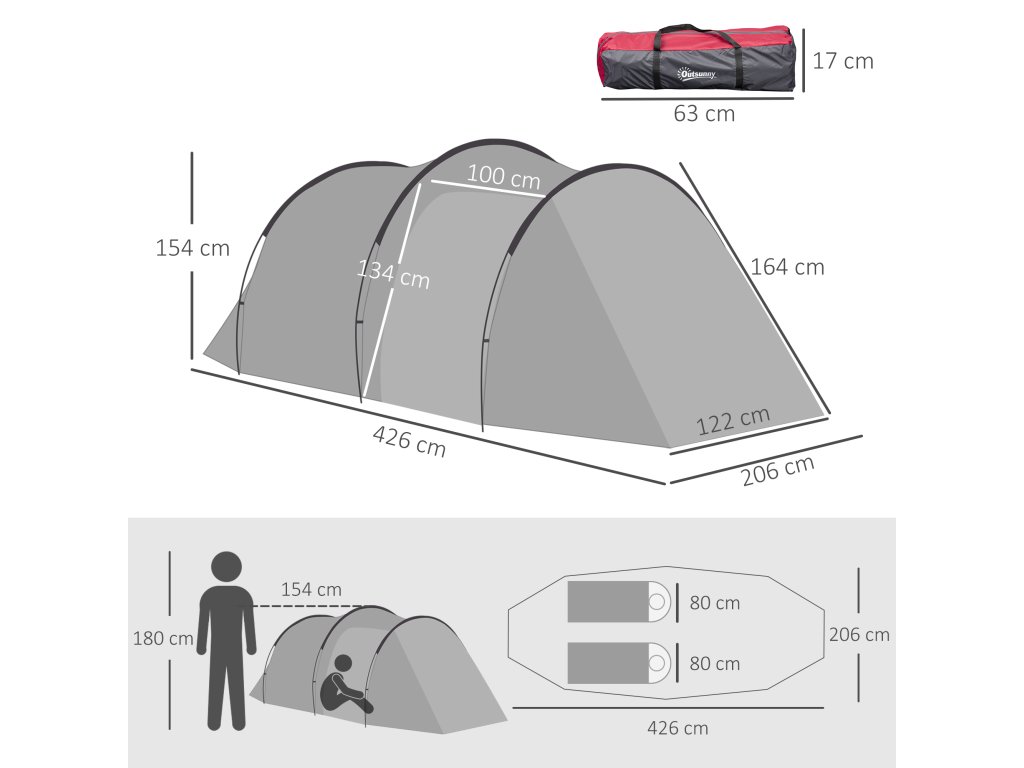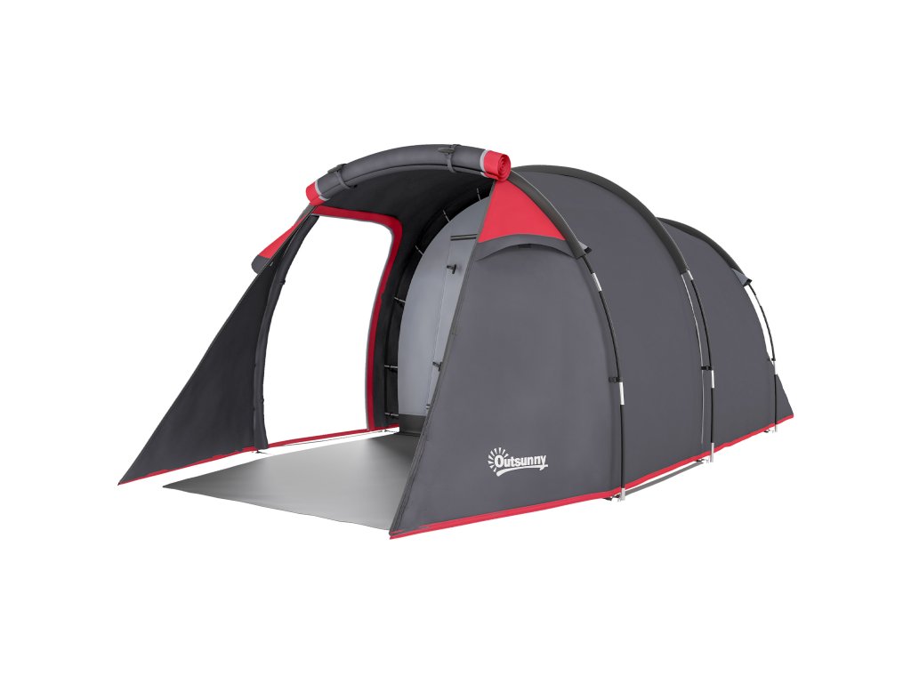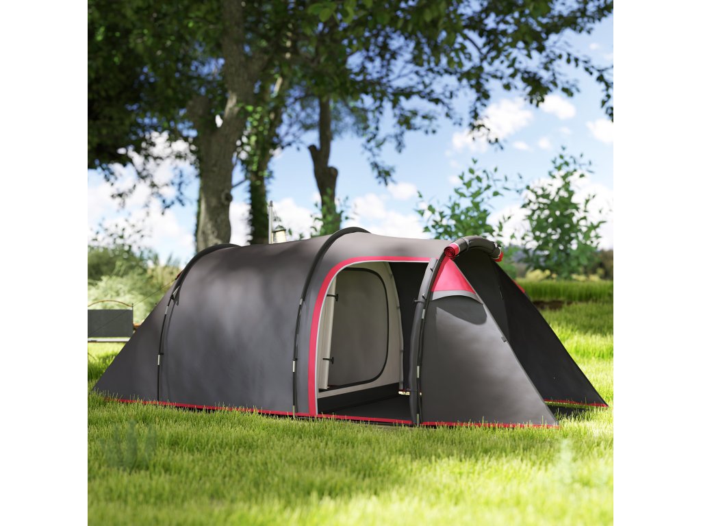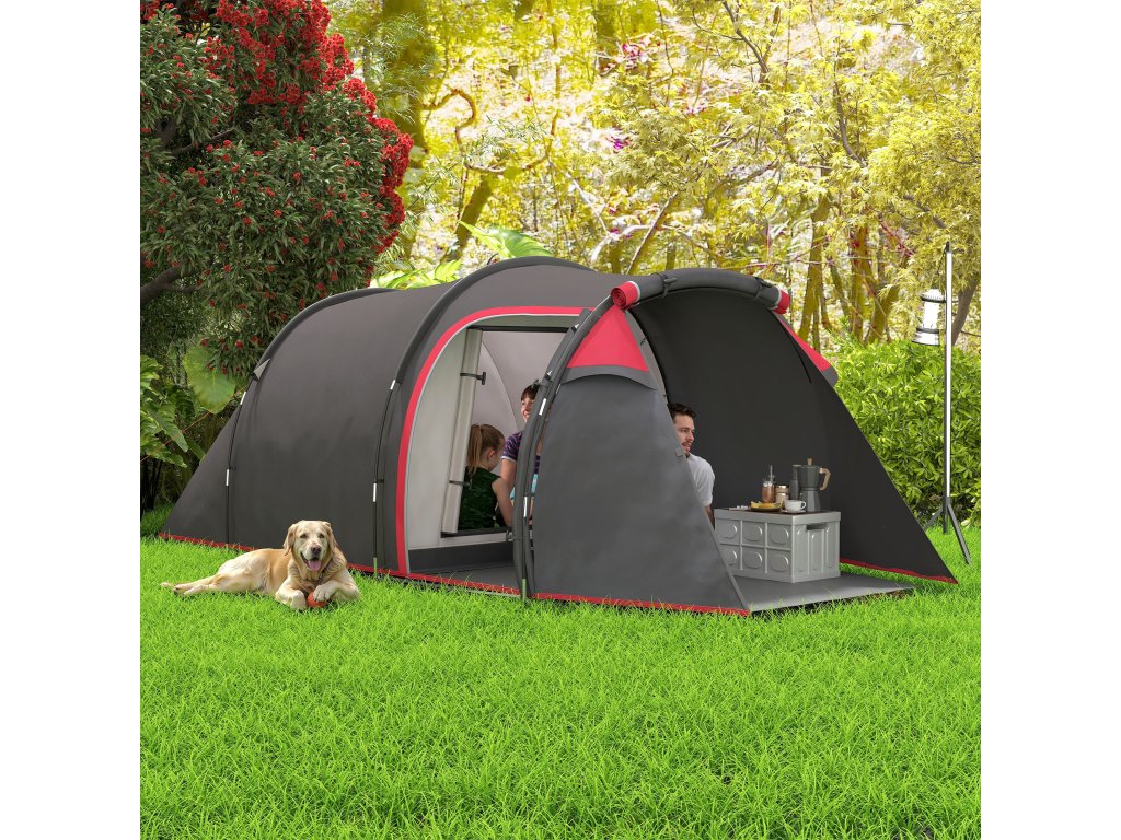 Kempinkový stan Outsunny, stan s baldachýnem pro 2-3 osoby, předsíňka a prostor na spaní, voděodolný, 426 x 206 x 154 cm, šedý