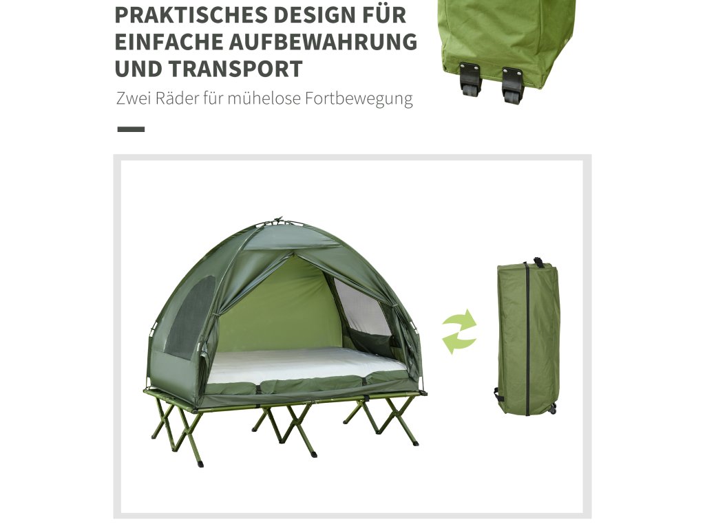 Kempovací stan Outsunny pro 2 osoby s pohovkou a nafukovací matrací, zelený