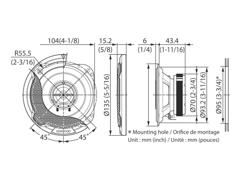 - Průměr montážního otvoru: 93,2 mm