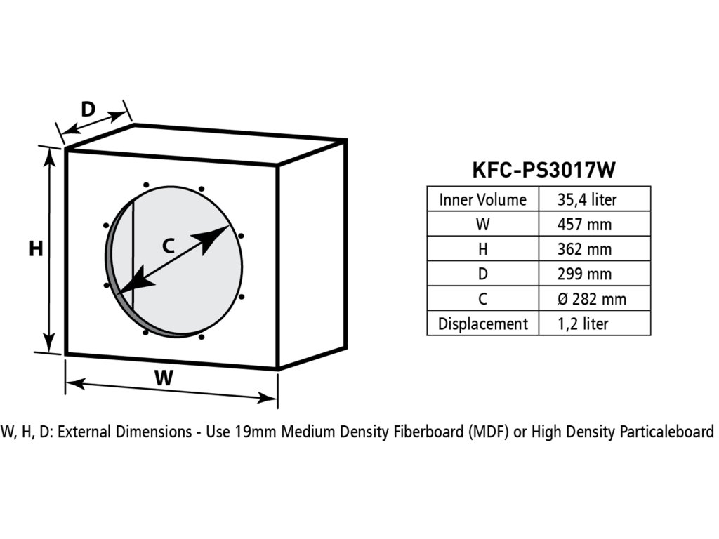 - Rozměry uzavřené ozvučnice (ŠxVxH): 457 x 362 x 299 mm (18 mm silné MDF)