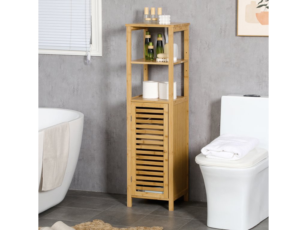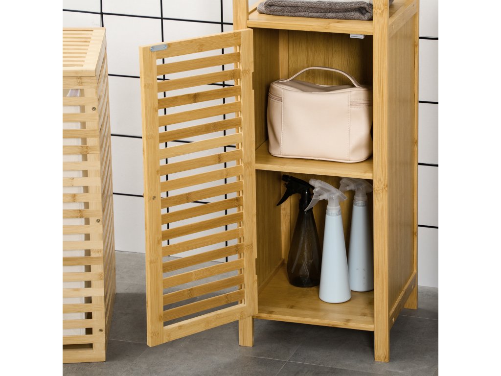 Potřebujete v koupelně více místa? Tato vysoká koupelnová skříňka Kleankin je úžasně kompaktní a optimálně využívá rohové prostory. Toaletní skříňka nabízí praktický úložný prostor pro toaletní potřeby, čisticí prostředky nebo ručníky. Tento kus koupelnového nábytku je vyroben z přírodního bambusu a snadno odolává vlhkosti a teplu. S tímto kusem nábytku budete mít vždy po ruce vše, co potřebujete.