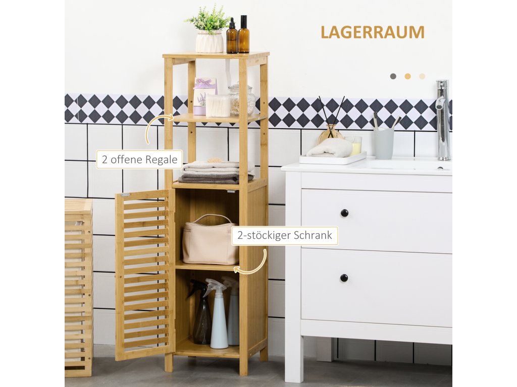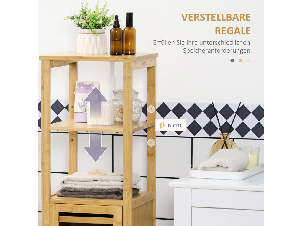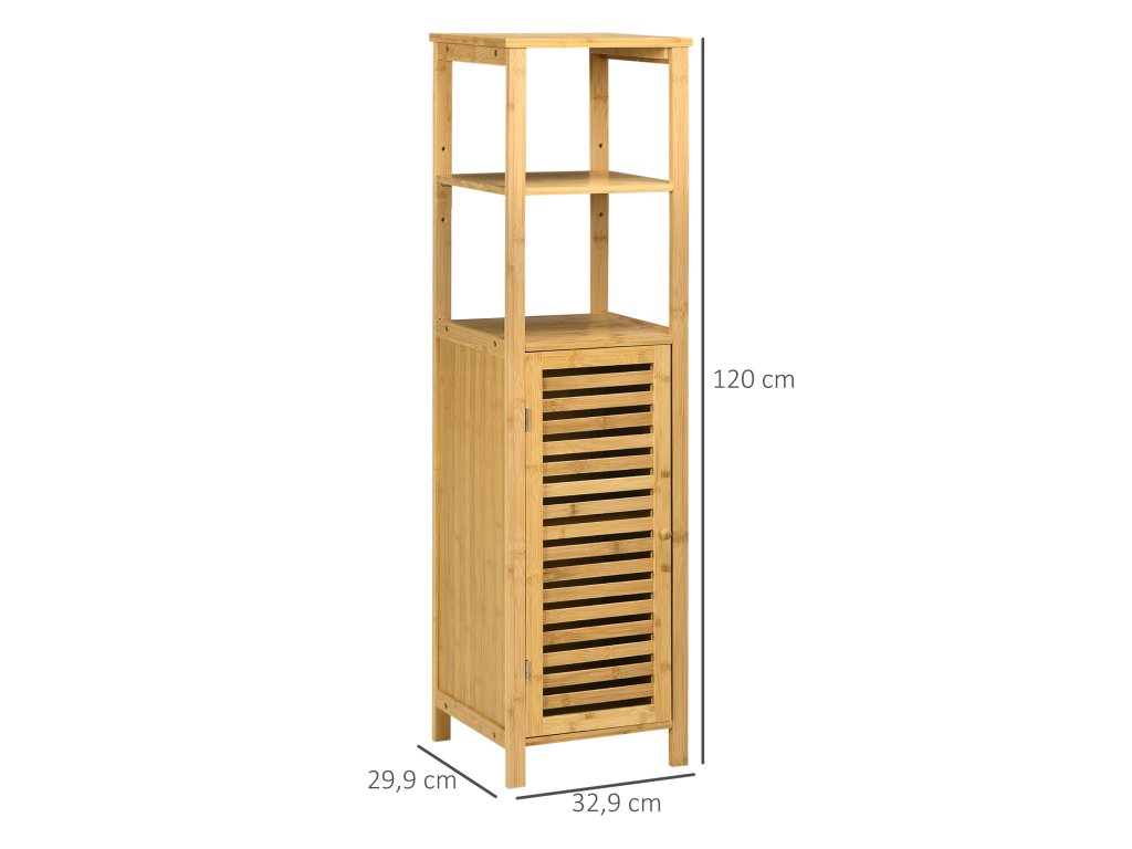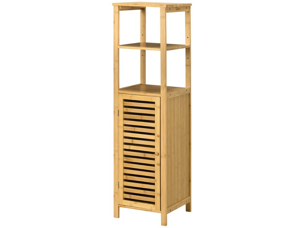 kleankin koupelnová polička, skříňka se žaluziovými dvířky, nastavitelné police, bambus, cca 33 x 30 x 120 cm