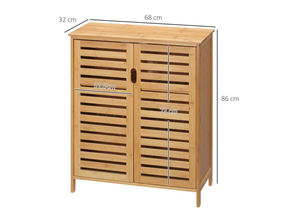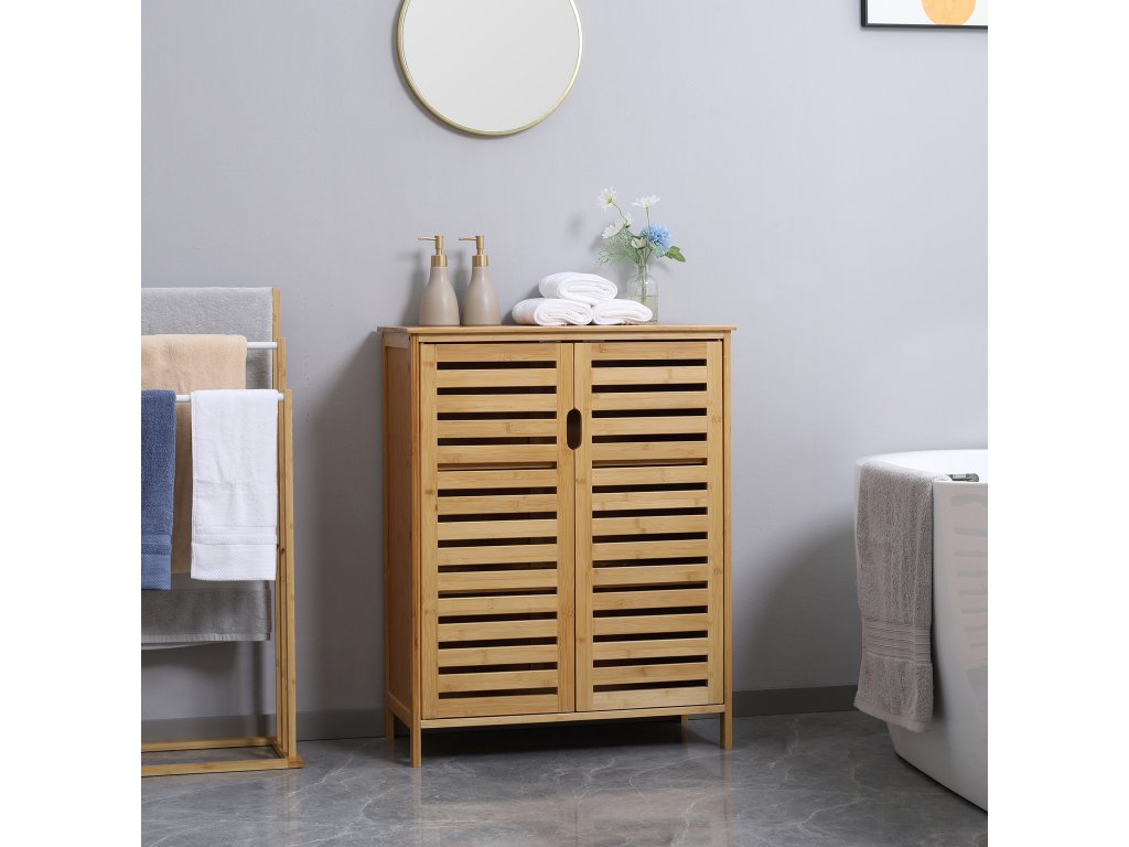 kleankin koupelnová skříňka, bambusová skříňka s lamelovým designem do koupelny, předsíně, kompaktní rozměry, spousta úložného prostoru, přírodní dřevo