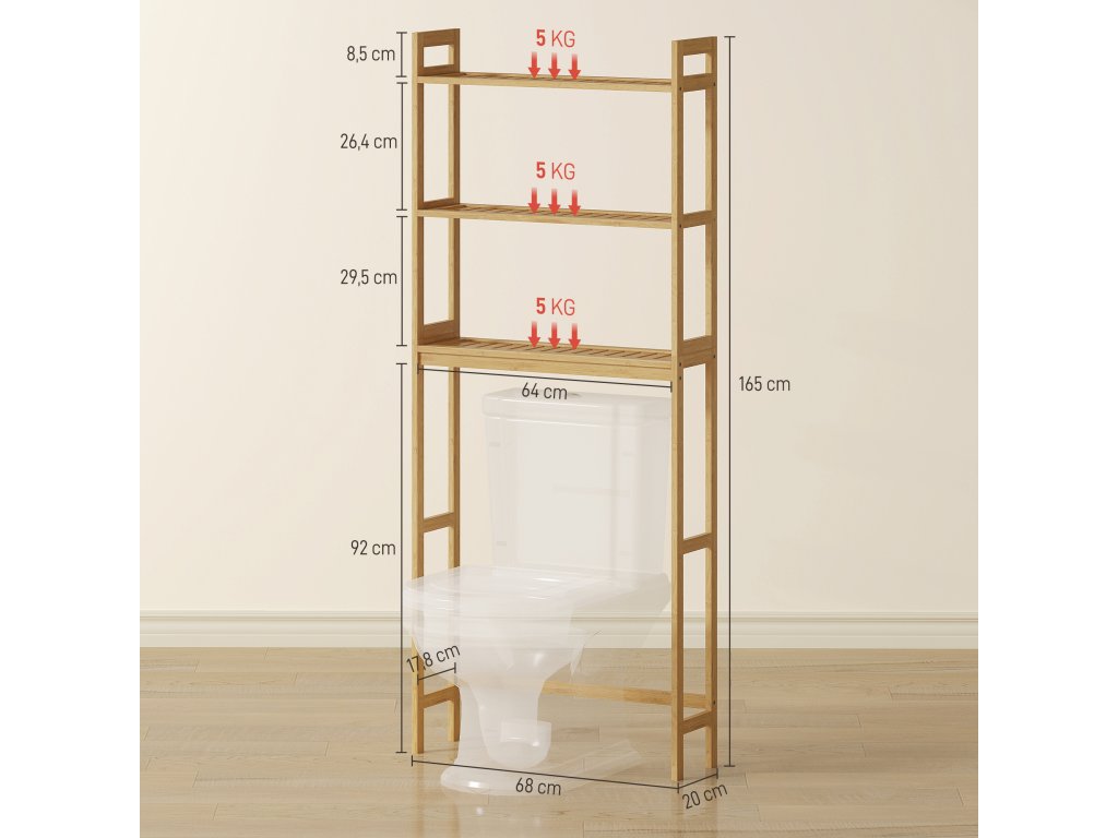 kleankin polička do koupelny Polička do koupelny Polička na toaletu, 3 police, voděodolná, 68 cm x 20 cm x 165 cm, příroda