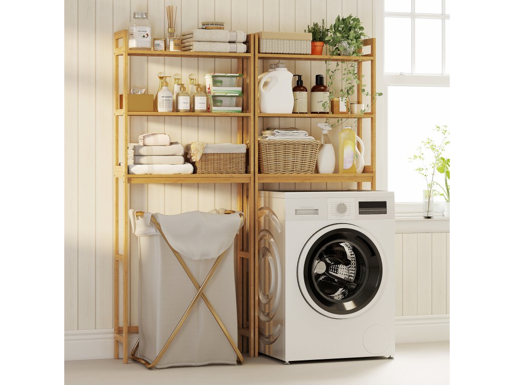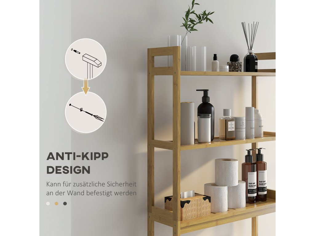 Využijte nevyužitý prostor v koupelně a vytvořte si další úložný prostor pro koupelnové potřeby pomocí skříňky Kleankin nad WC. Koupelnová polička se 3 otevřenými policemi ve vertikálním provedení šetří místo a je ideální pro malé místnosti. Volně stojící skříňka z odolného bambusu má přírodní a hřejivý vzhled a je vhodná pro každodenní použití. Místo hromadění všeho možného budete mít s koupelnovým organizérem Kleankin vždy po ruce vše, co potřebujete.