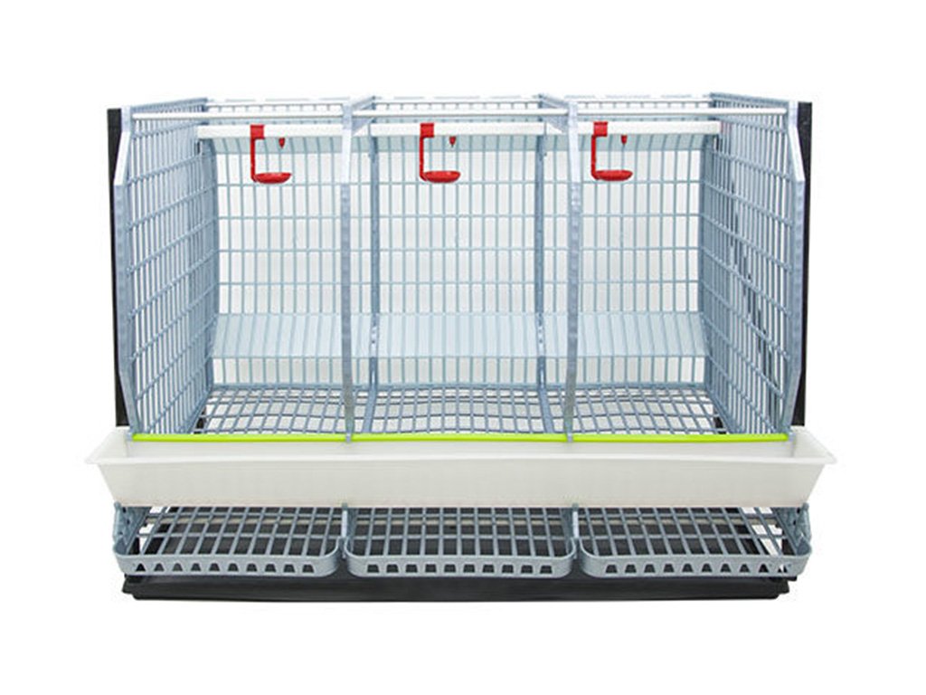 Klec pro chov drůbeže vhodná k chovu 3 až 9 ks slepic s patentovanou technologií Comfortplast o rozměrech 98x67x225 cm. Jedná se o 3 patrovou klec s 9 oddíly, která je vybavena vlastními snáškovými zásobníky na slepičí vejce, krmítky s mřížkou proti plýtvání krmiva, napáječkami s přívodem vody z 20 litrového zásobníku. Klece jsou vyrobeny z plastu s vysokou odolností proti slepičímu trusu i bakteriím - velice snadná údržba klece i trusníku. Snadná manipulace pomocí koleček s brzdou.