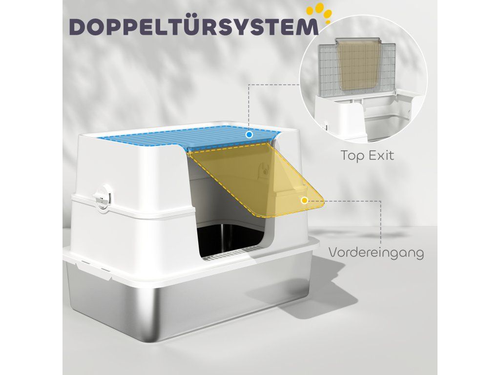 Už vás nebaví rozházená podestýlka a nepříjemný zápach? Nerezová kočičí toaleta PawHut nabízí úlevu. Její odolná konstrukce z nerezové oceli 201 je odolná proti poškrábání a prasklinám, což zajišťuje dlouhou životnost a snadnou údržbu. XL design toalety poskytuje vaší kočce dostatek prostoru pro pohyb a dva vchody snižují nepořádek. Snadno tak vylepšete pohodlí vašeho mazlíčka a čistotu vašeho domova.