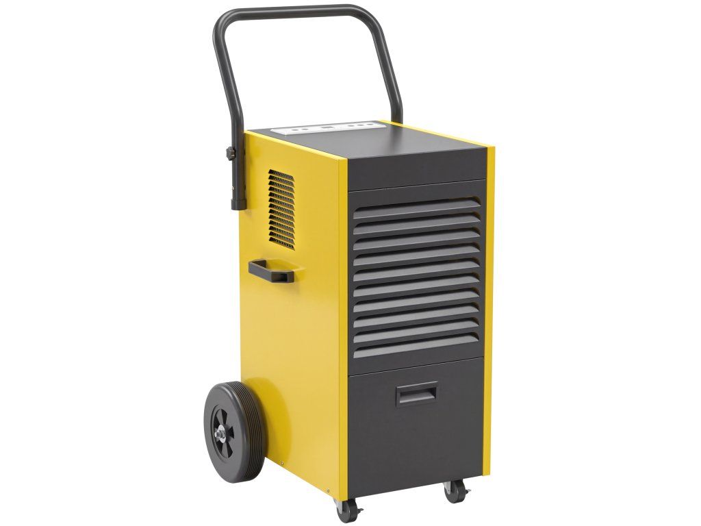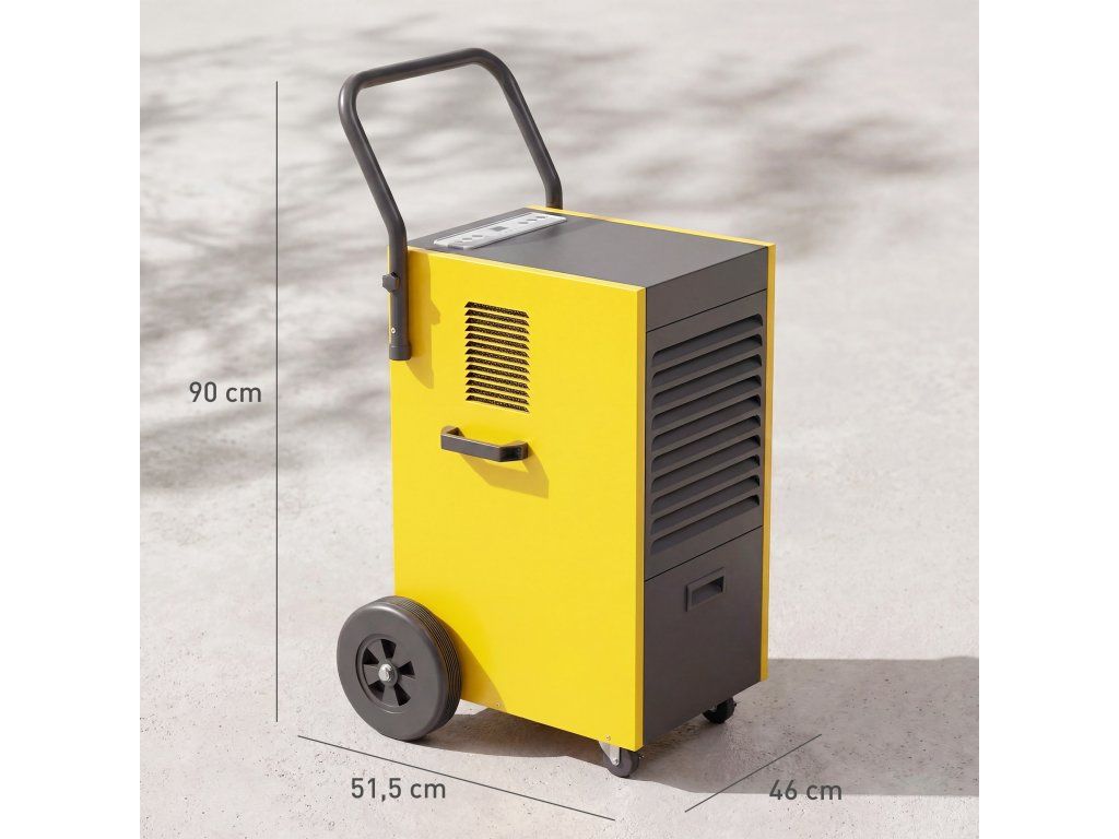 Komerční odvlhčovač DURHAND 70 l/den s kolečky a rukojetí, hadicí s nepřetržitým odtokem, 24hodinovým časovačem, nádrží 5,5 l, žlutým