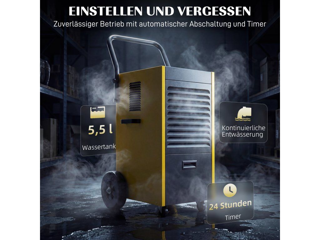 Už vás nebaví vlhkost, která ohrožuje váš sklep nebo staveniště? Neustálé obavy z poškození vlhkostí mohou být ohromující, zvláště když je obtížné manipulovat s vybavením a vyžaduje časté kontroly. Odvlhčovač DUHRAND nabízí řešení, které můžete nastavit jednou a pak na něj zapomenout. Denně odstraňuje 70 litrů vlhkosti s nepřetržitým odvodněním a díky robustním kolečkům jej můžete snadno umístit kamkoli.
