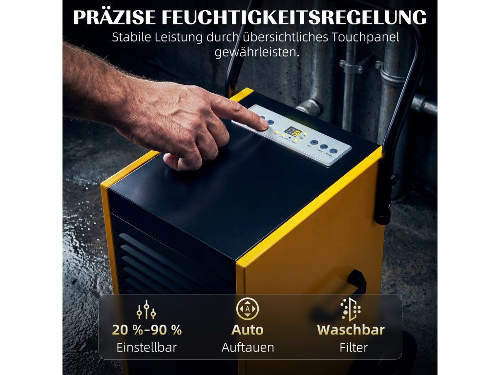 Přesná regulace vlhkosti: Dotyková obrazovka umožňuje nastavit úroveň vlhkosti (20–90 %). Odvlhčovač se automaticky reguluje, odmrazuje a zajišťuje stabilní provoz.