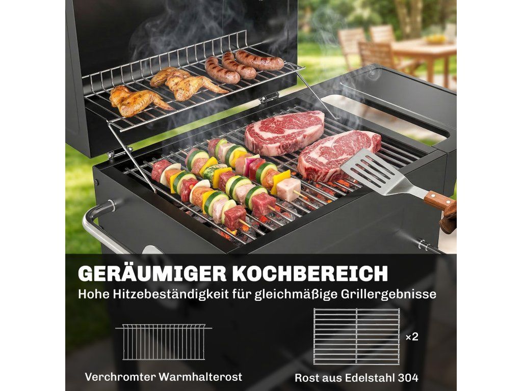 Vysoká tepelná odolnost: Hlavní rošt z nerezové oceli 304 nabízí grilovací plochu 0,12 m², zatímco chromovaný ohřívací rošt udržuje jídlo teplé. Rám z uhlíkové oceli odolává teplotám až 400 °C, což zajišťuje vynikající udržení tepla a dlouhou životnost.