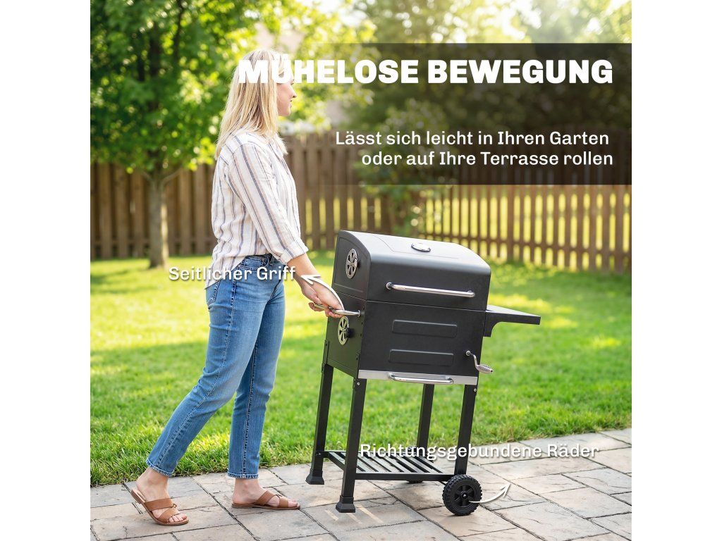 Snadné přemisťování: Díky dvěma otočným kolečkům a boční rukojeti lze gril na dřevěné uhlí bez námahy přemístit na jakékoli požadované místo. Ideální pro rodinné večeře a pohodové grilování na zahradě nebo na terase.