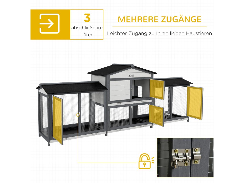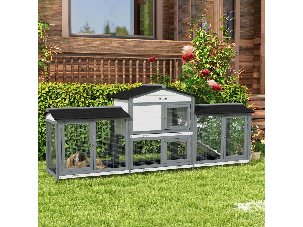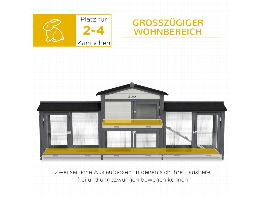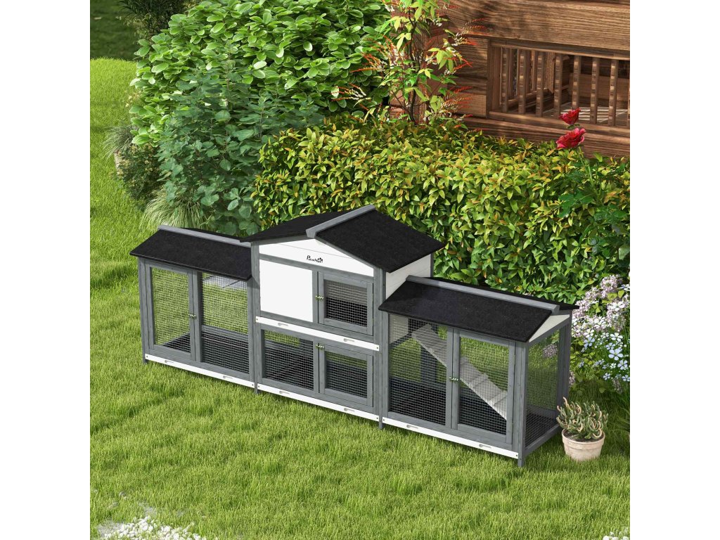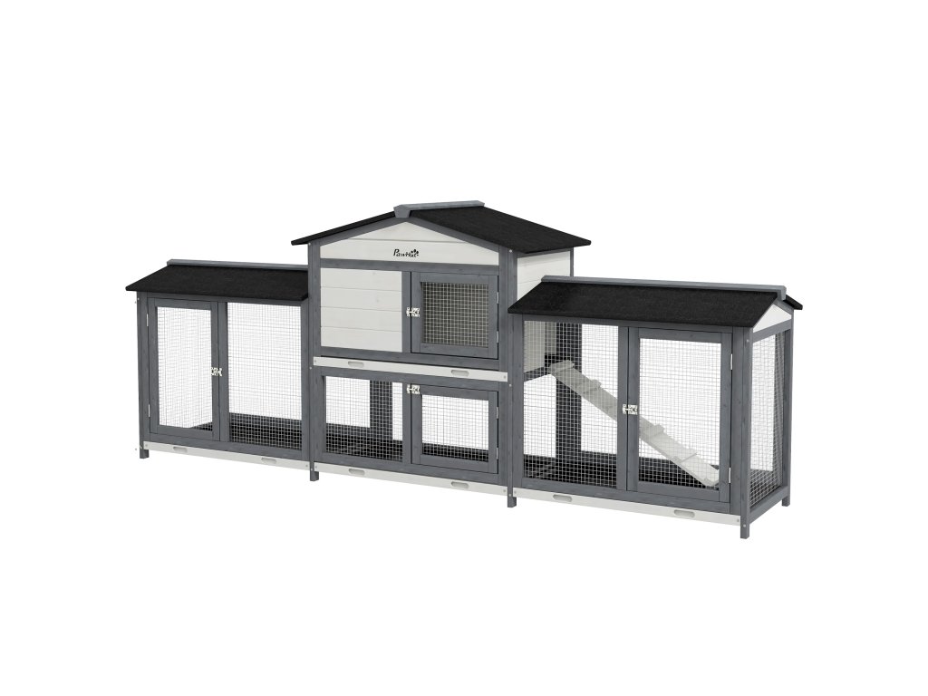 Prostorný design: Tato králíkárna má dva další výběhy a navíc obytný prostor, což vašim mazlíčkům poskytuje dostatek prostoru k volnému pohybu.