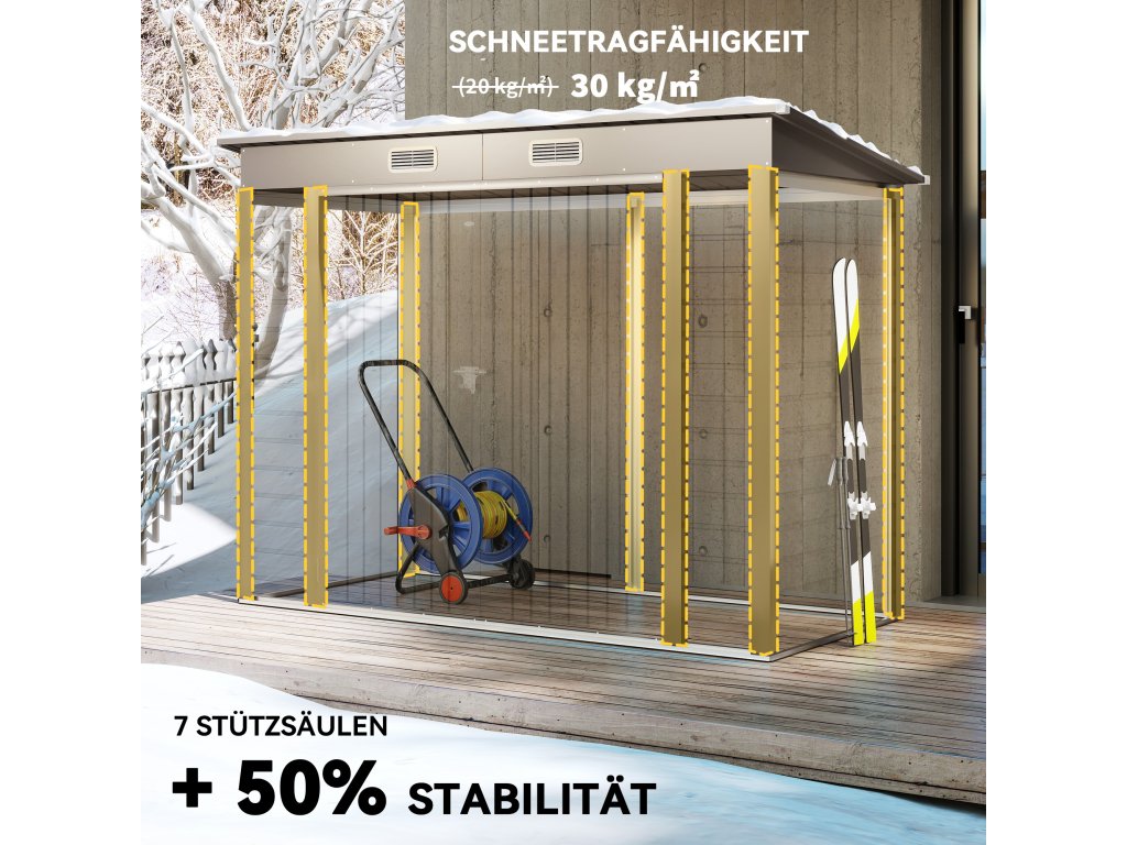 ✔ Pozinkovaná ocelová konstrukce zahradního domku zaručuje stabilitu a odolnost vůči povětrnostním vlivům.