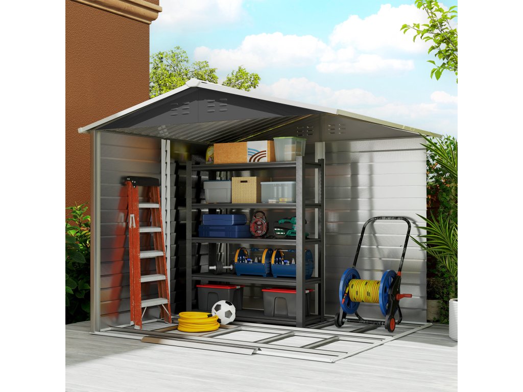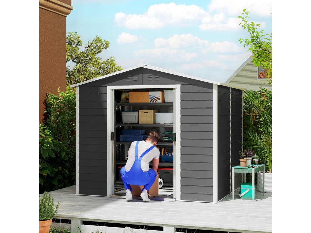 Rozšiřte svůj úložný prostor a zvyšte hodnotu své nemovitosti s vysoce kvalitním zahradním domkem od Outsunny. Chraňte své cenné vybavení díky vodotěsné, pozinkované střeše domku. Větrací otvory zajišťují suchý a bez zápachu interiér. Bezpečný zamykací mechanismus chrání vaše nářadí před krádeží. Ať už je to sekačka na trávu, lopaty nebo dokonce motocykl – vše zde má své místo.