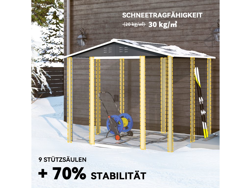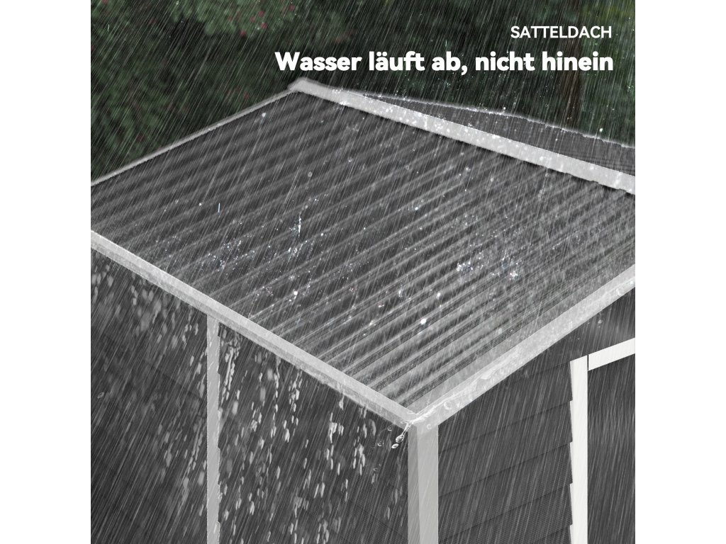 Odolný proti povětrnostním vlivům a stabilní: Voděodolný, pozinkovaný ocelový rám činí tento kovový zahradní domek ideálním pro celoroční venkovní použití. Základní rám poskytuje extra stabilitu a chrání podlahu před vlhkostí.