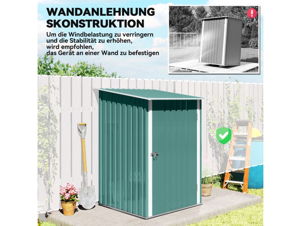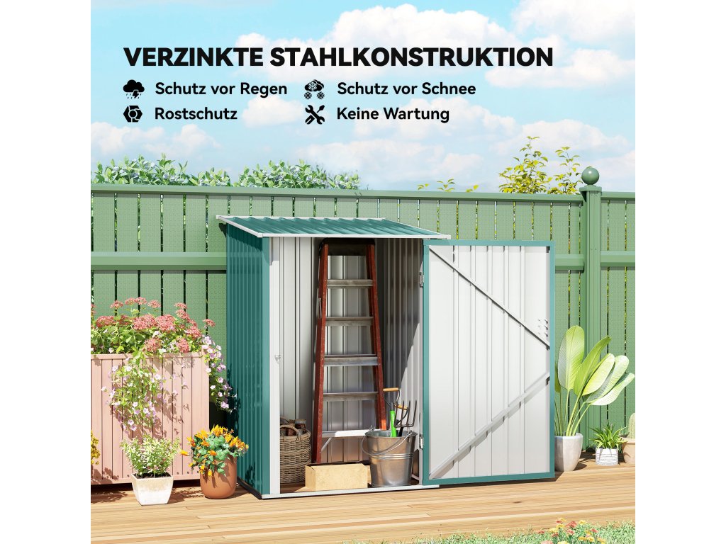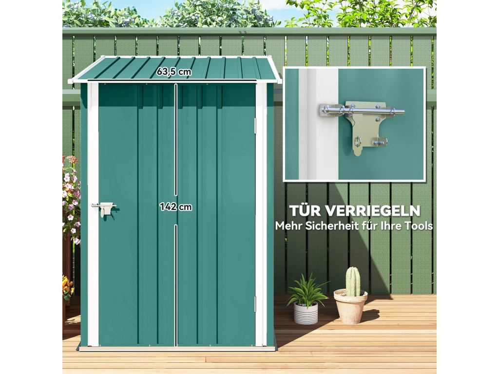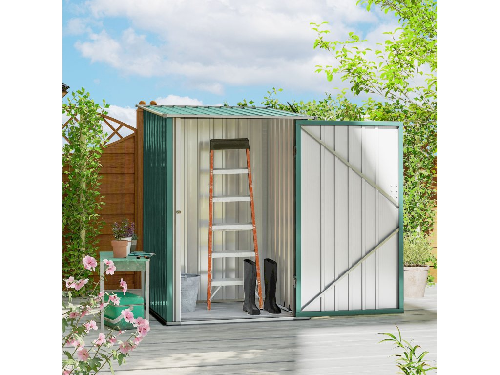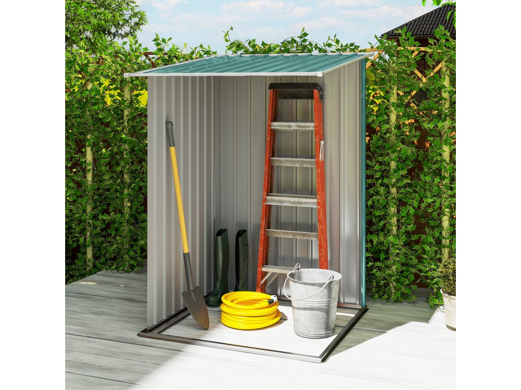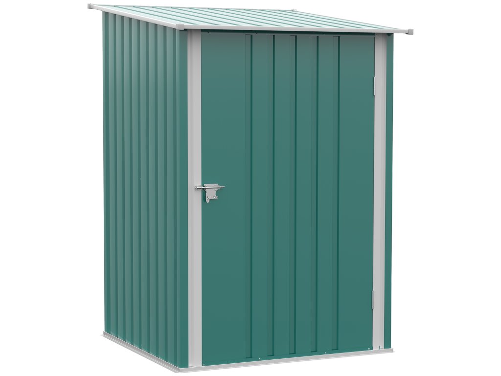Kovový zahradní domek Outsunny s pultovou střechou, uzamykatelné dveře, venkovní použití, 100x103x160 cm, zelený