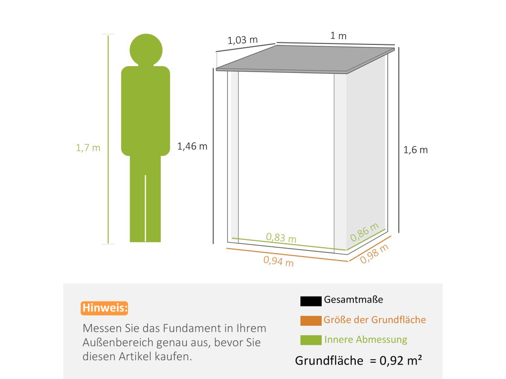 Velkorysý úložný prostor: S půdorysem 0,92 m² nabízí tento zahradní domek dostatek prostoru pro zahradní nářadí, sekačky na trávu nebo nábytek, což zajišťuje trvale uklizenou a relaxační atmosféru na zahradě.