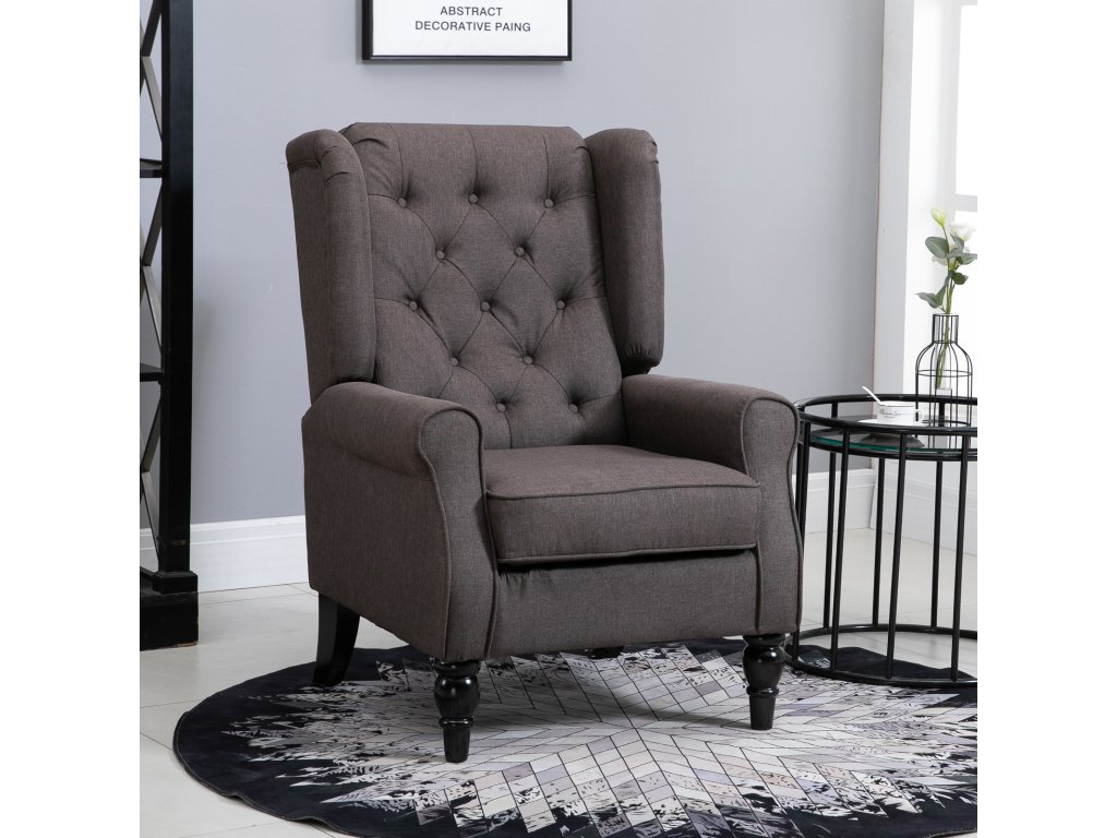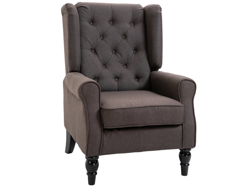 Křeslo HOMCOM s prošívaným opěradlem a vysokým opěradlem, čalouněné křeslo se zaoblenými područkami, dřevěné nohy, do ložnice, obývacího pokoje, do 160 kg, hnědá