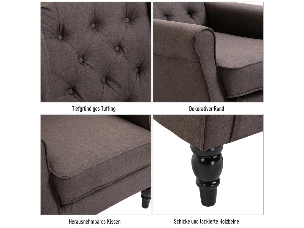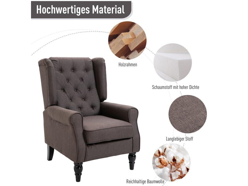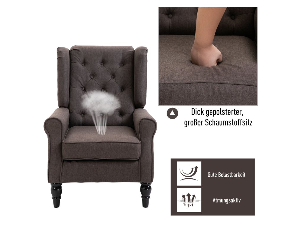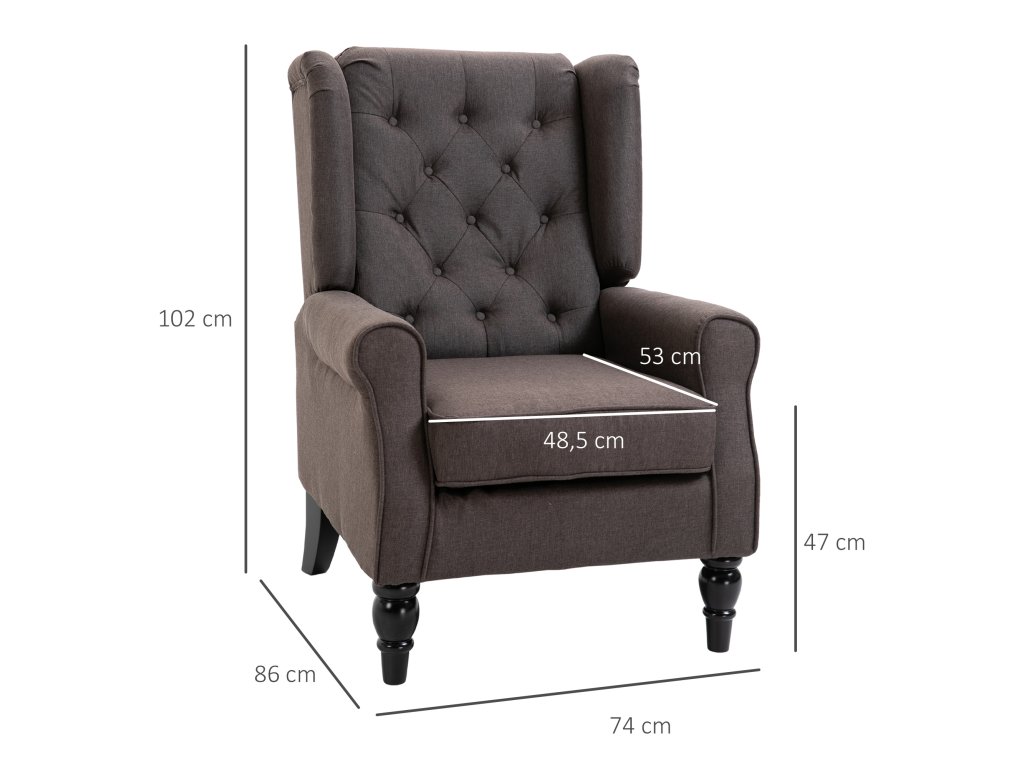 Dodá vašemu obývacímu pokoji nádech stylu a šarmu s tímto elegantním křeslem s opěradlem od HOMCOM. Elegantní opěradlo s propracovanými knoflíkovými detaily a leštěné dřevěné nohy s jemnými křivkami dělají z tohoto pohodlného křesla skutečný poutač pozornosti. Užijte si jeho vysokou úroveň pohodlí jako útulné čtecí křeslo nebo stylový doplňkový prvek. Díky vysoce kvalitnímu zpracování a odnímatelnému, pratelnému potahu sedáku bude vždy v perfektním stavu.
