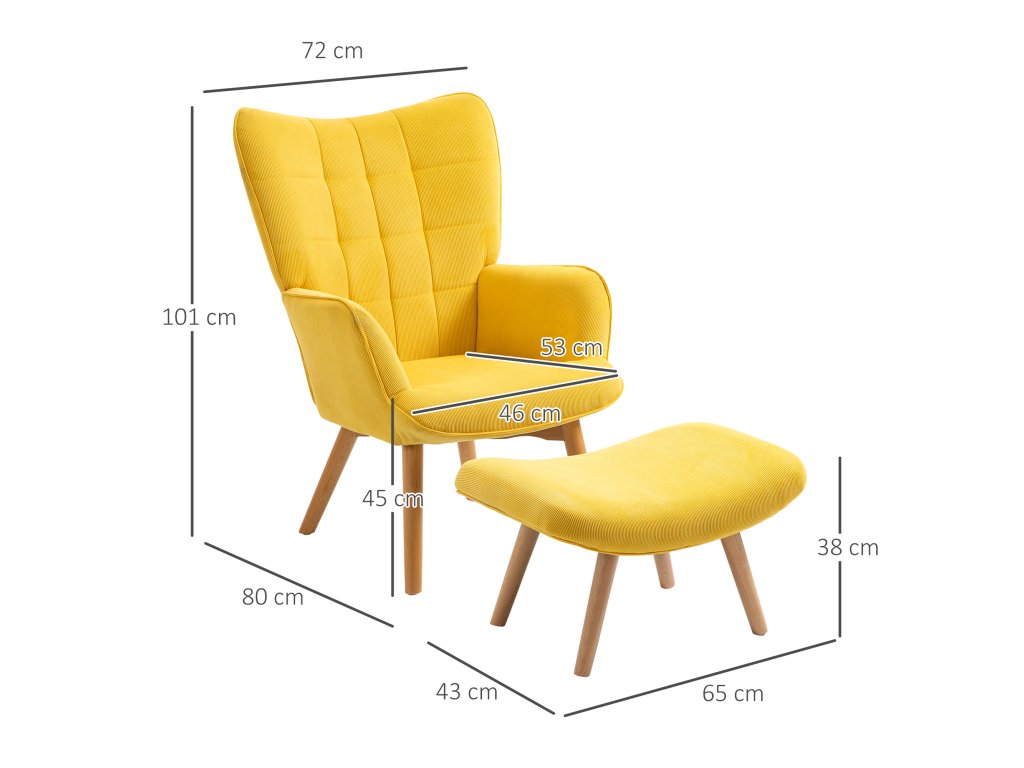Křeslo s taburetem Milano - žluté 72 x 80 x 101 cm