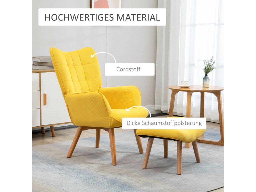 Nastavte scénu stylově s touto sadou křesla a otomanu od HOMCOM. Silně polstrované sedadlo poskytuje dostatek pohodlí, zatímco nohy si můžete postavit na přídavnou stoličku. Toto křeslo je krásným a pohodlným místem k sezení, čtení knihy, posezení s přítelem nebo prostě jen trávit čas sami - sada křesla a stoličky na čtení zpříjemní večer.