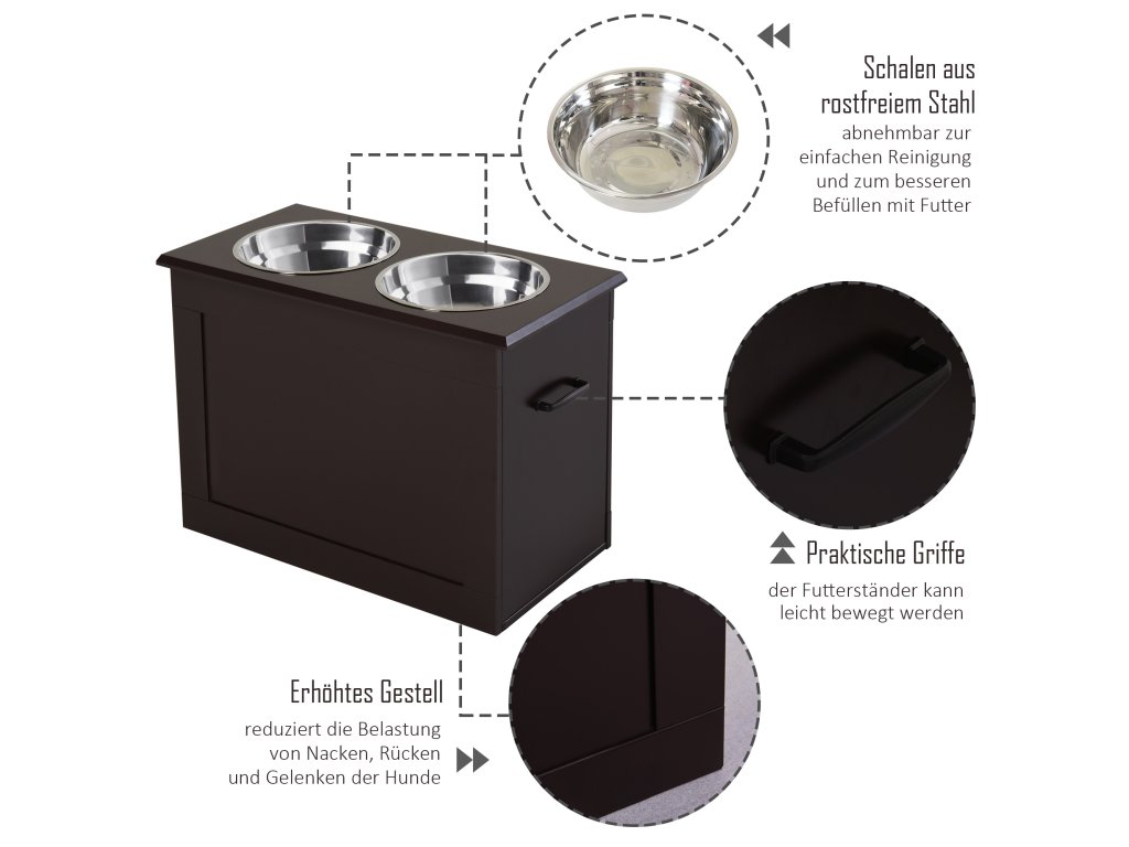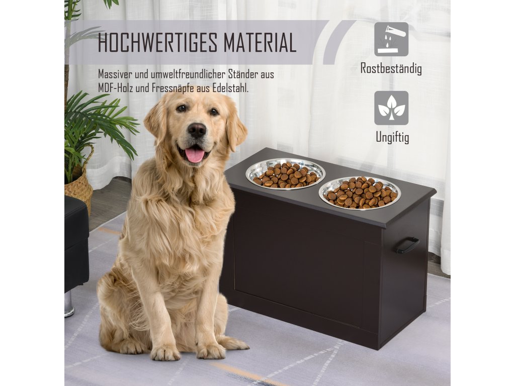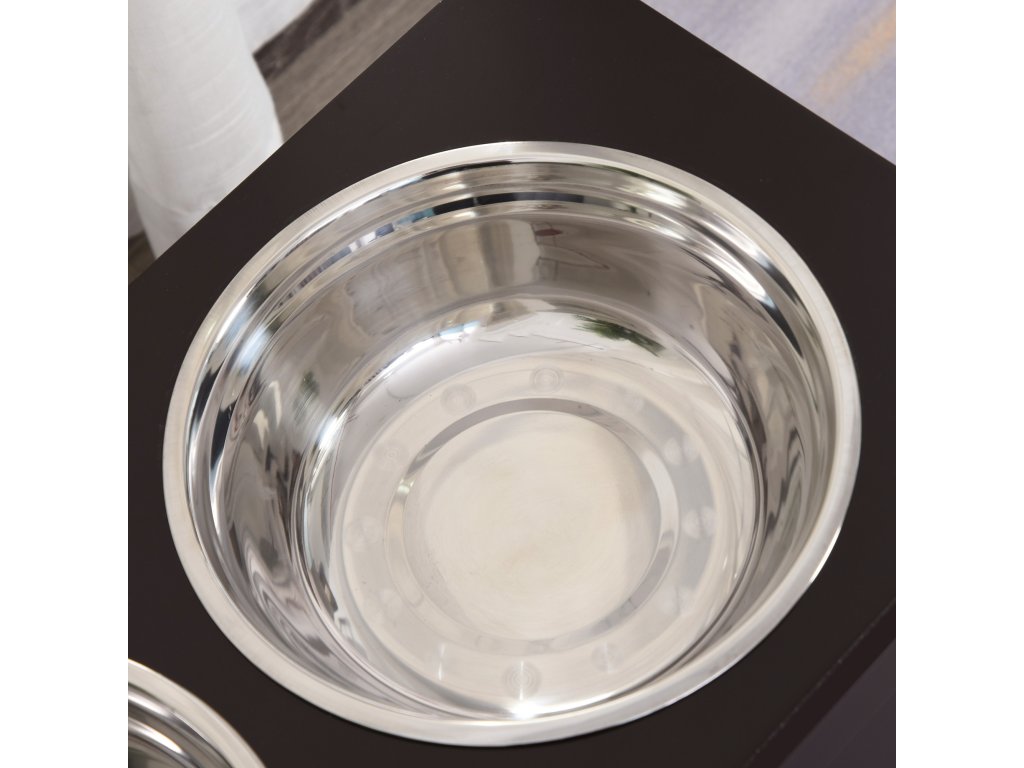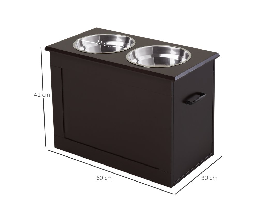Krmná stanice PawHut, 2 misky z nerezové oceli, skrytý úložný prostor, 60 cm x 30 cm x 41 cm, černá + stříbrná